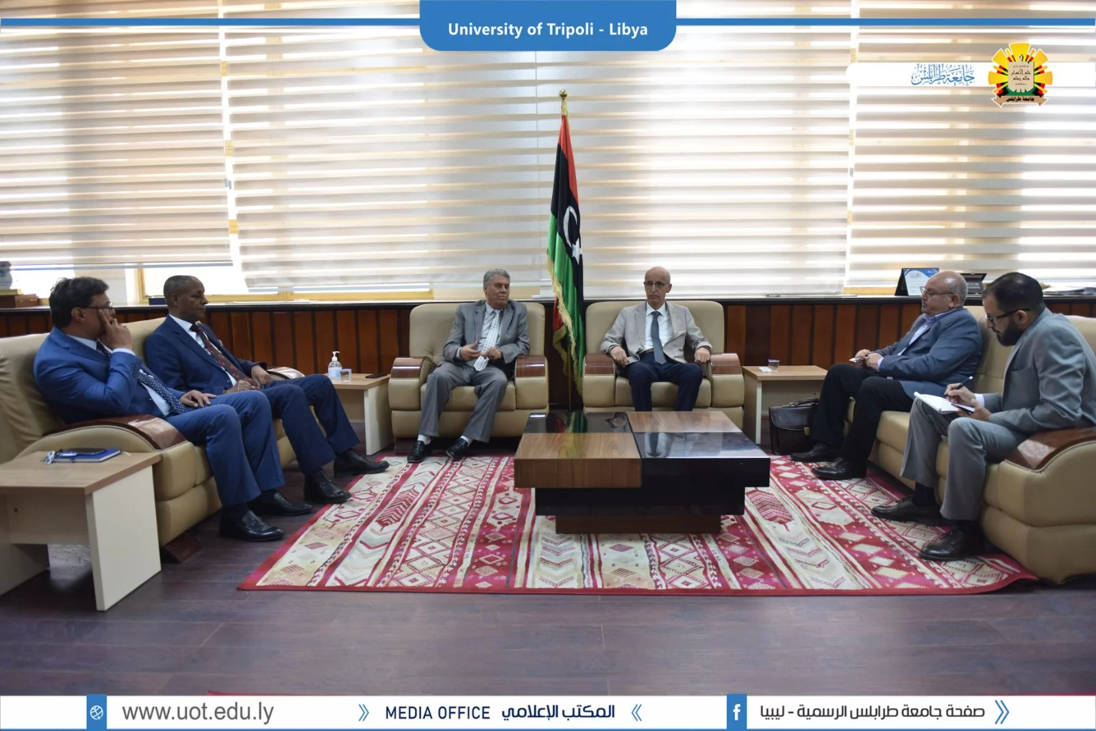 إجتمع اليوم السيد أ.د. خالد عون رئيس جامعة طرابلس رفقة السيد د. خالد غومة وكيل الجامعة للشؤون العلمية والسيد د. صلاح الباروني الوكيل المساعد للكليات الطبية بالسادة مركز المناهج التعليمية والبحوث التربوية.حيث تم خلال الإجتماع أوجه التعاون بين الطرفين وقد تم الاتفاق على إبرام إتفاقية تعاون تمك