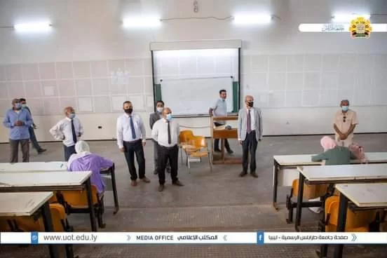 طرابلس 14 سبتمبر 2021م.في اطار جولاته التفقدية لكليات ومرافق الجامعة، قام يوم أمس الثلاثاء السّيد رئيس الجامعة أ.د خالد عون، رفقة كلٍ من وكيل الشؤون العلمية د. طلال الزرقاني، والوكيل المساعد للعلوم الانسانية د. خالد غومة، بزيارة لبعض الكليات بالقاطع (ب) لتفقد سير العملية التعليمية،