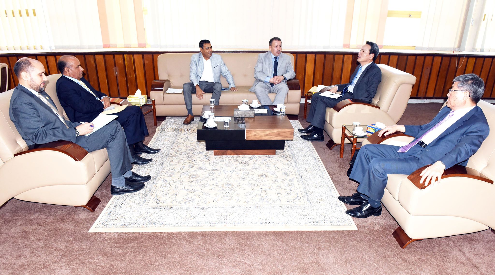 The President of the University of Tripoli, Dr. Nabil Al-Natah, received the Korean Ambassador to Libya Kim Yong-Chai. The reception was attended by the Undersecretary of the University of Tripoli, Dr