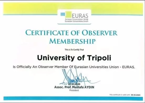 the University of Tripoli has gained an Observer Membership of EURAS. It is a