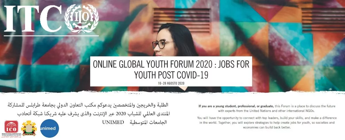 يدعوكم مكتب التعاون الدولي بجامعة طرابلس للمشاركة في المبادرة التي تنظمها شبكة أتحاد الجامعات المتوسطية UNIMED عن طريق شبكته الفرعية الخاصة بالتوظيف وبالتعاون مع المركز الدولي للتدريب التابع لمنظمة العمل الدولية ITC-ILO والتى تخص الطلاب والمهنيين والخريجين الشباب. فقد أطلق المركز الدولي للتدريب