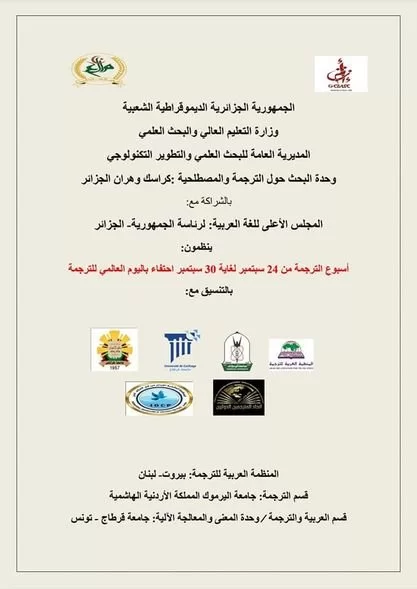 مشاركة جامعة طرابلس أحتفالية أسبوع الترجمة 24 سبتمبر لغاية 30 سبتمبر التى تنظمها وزارة التعليم و البحث العلمى الجزائرية