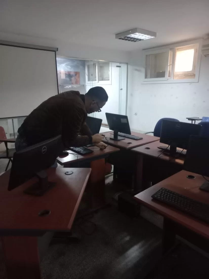 تم خلالها صيانة أجهزة حاسوب داخل معمل المختبر الإعلامي.