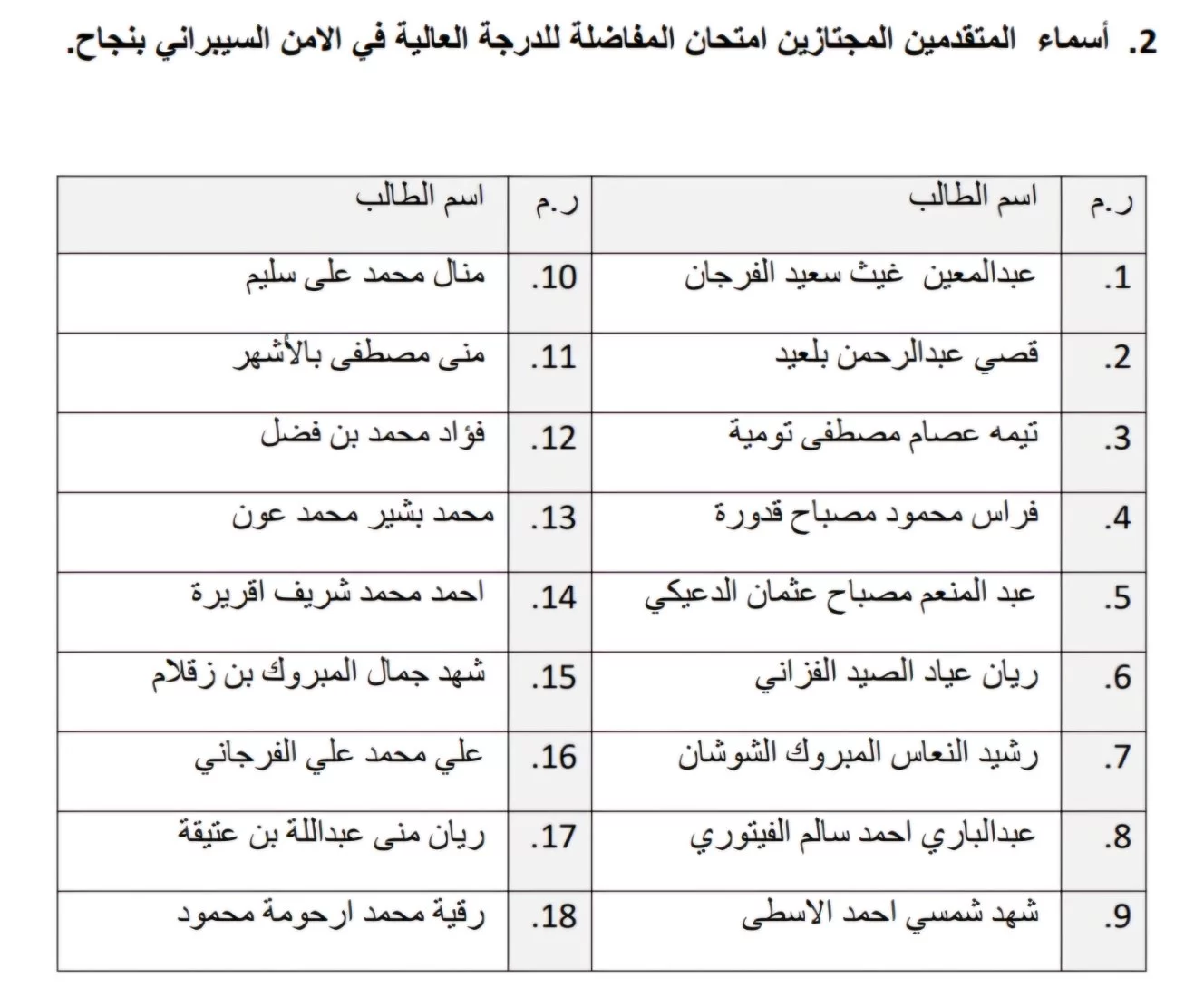 يسر مكتب الدراسات العليا والتدريب بكلية تقنية المعلومات جامعة طرابلس ، أن يعلن عن نتائج امتحان المفاضلة لجميع البرامج الأكاديمية (ماجستير) للعام الجامعي 2024-2025.