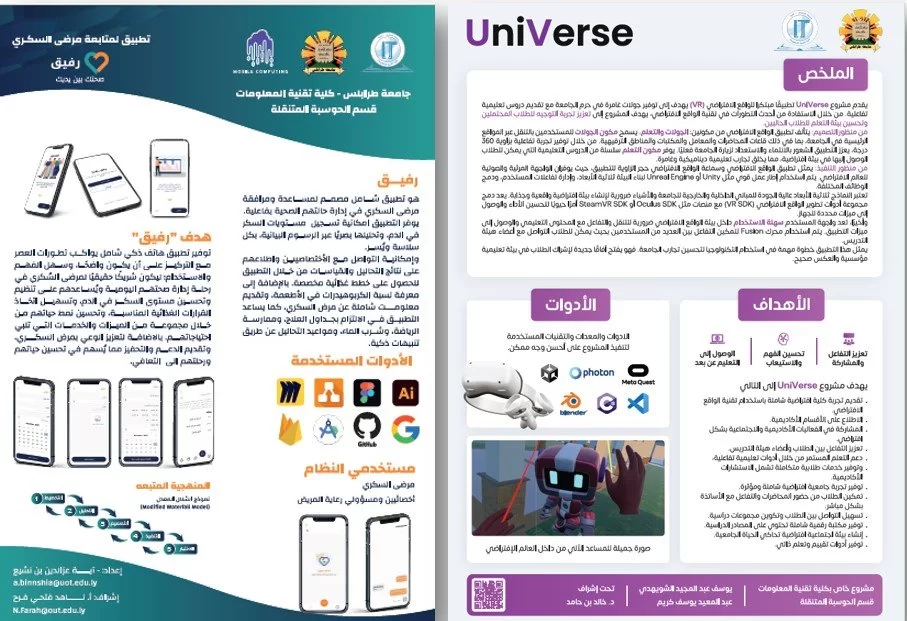 5- منصة تعليمية باستخدام الواقع الافتراضي " UniVerse " ، تحت اشراف الأستاذ الفاضل: د.خالد بن حامد، ومن إعداد الطلبة: