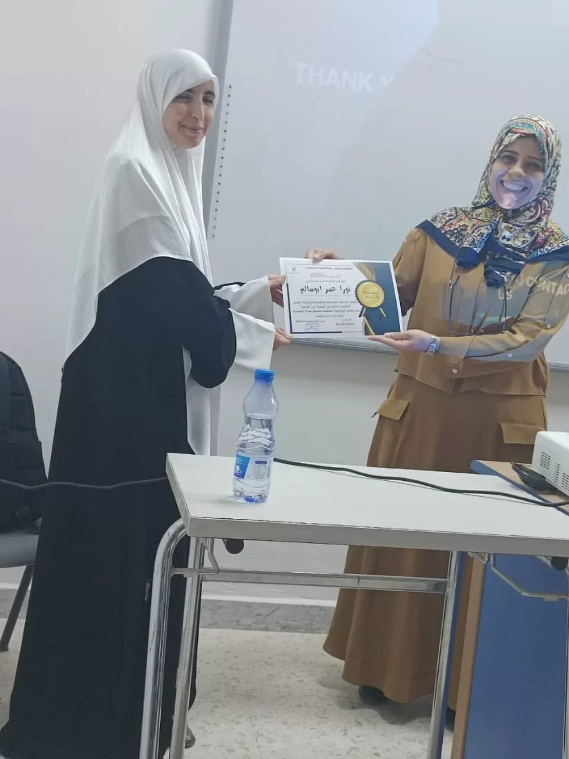 اقيمت صباح الاحد الموافق 1\6\2025 بالقاعة رقم "1" في كلية تقنية المعلومات ورشة عمل بعنوان "مشروع التخرج من الفكرة الى التنفيد", القتها المهندستان وخريجتا قسم الحوسبة المتنقلة, م.نورا ابوسالم وم.شهد بلحاج.
