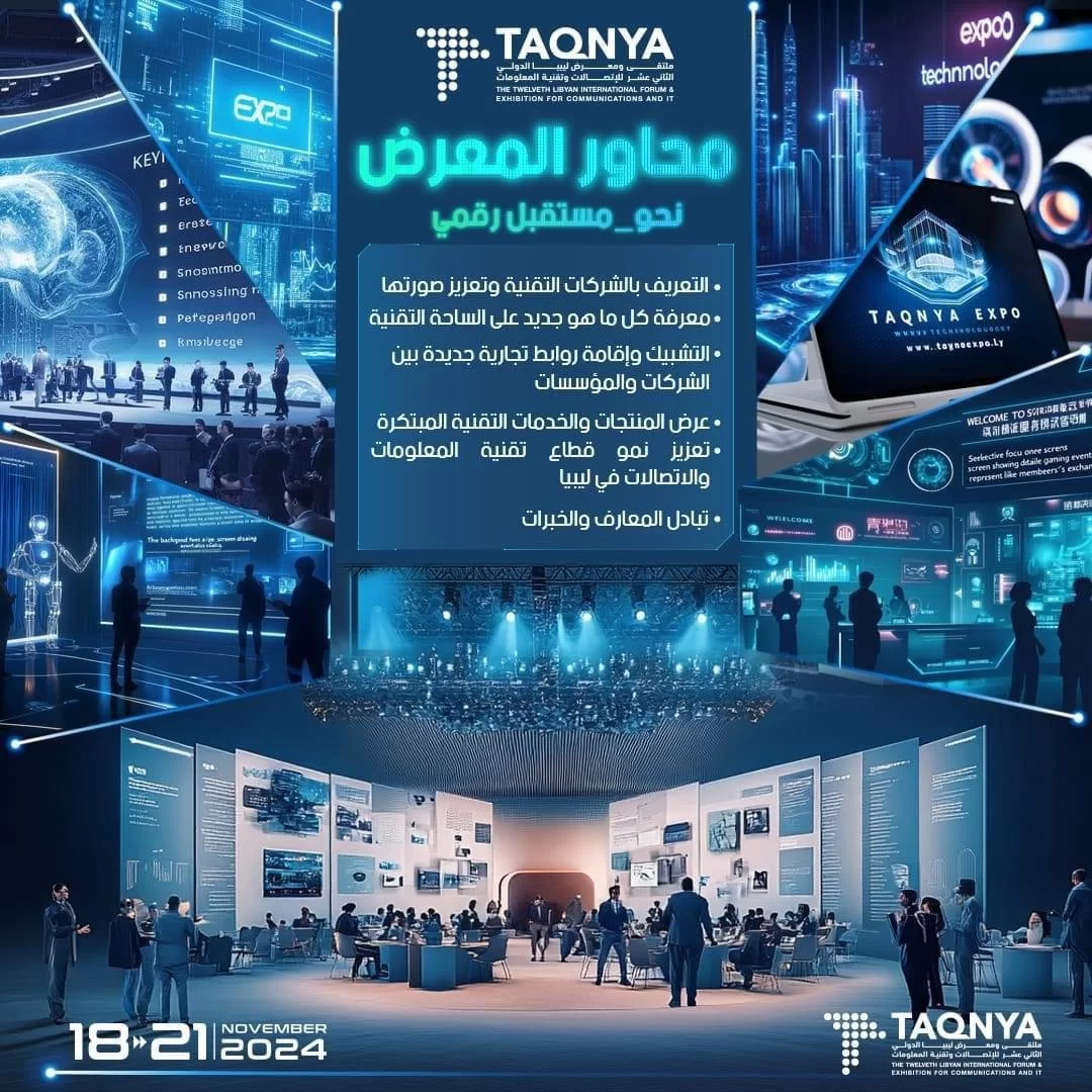 تشارك الكلية بجناح في معرض ليبيا الدولي الثاني عشر للاتصالات و تقنية المعلومات من 18-21 / 11 / 2024 للتعريف بمخرجاتها و اتاحة الفرصة للتشبيك بين مؤسسات الدولة و الشركات لسد الفجوة بين مخرجات الجامعة و سوق العمل بالاضافة الي تبادل المعارف و الخبرات.