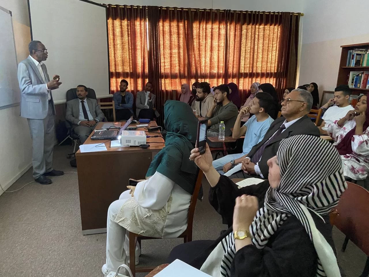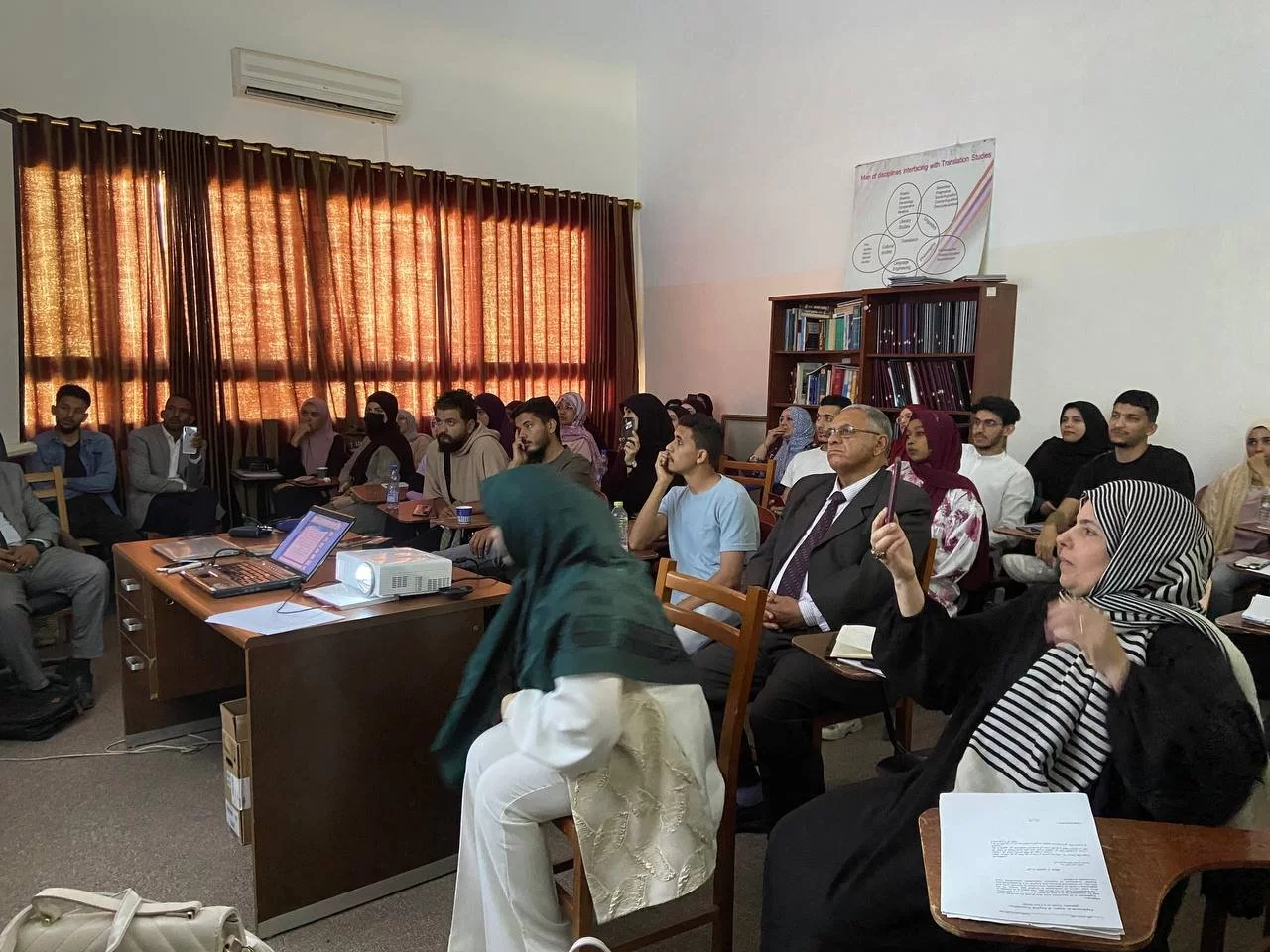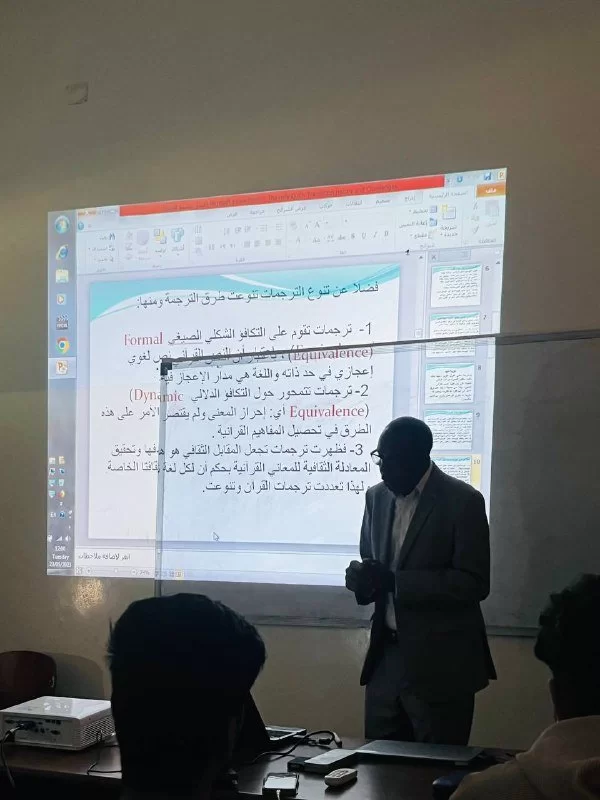 ضمن أنشطة الموسم الثقافي لقسم الترجمة والتعريب للفصل الدراسي ربيع 2023، ألقى الاستاذ الدكتور خليفة أبوبكر الاسود محاضرة بعنوان: ترجمة معاني القرآن الكريم إلى اللغة الإنجليزية (تاريخ وتحديات)، تناول المحاضر عدد من العناوين الفرعية لموضوع المحاضرة تمثلت في المحاور التالية:
