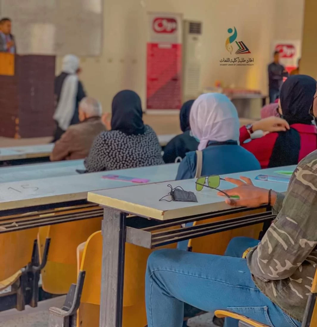 وكذلك قد تم تعريفهم بالكلية ومعالمها وأقسامها العلمية ، وذلك بحضور سيادة عميد الكلية ، والسادة رؤساء الأقسام بالكلية ، قد تم التعريف بالكلية ، وبكل قسم من الأقسام ، وبحضور رئيس اتحاد طلبة جامعة طرابلس ورئيس اتحاد طلبة كلية اللغات .