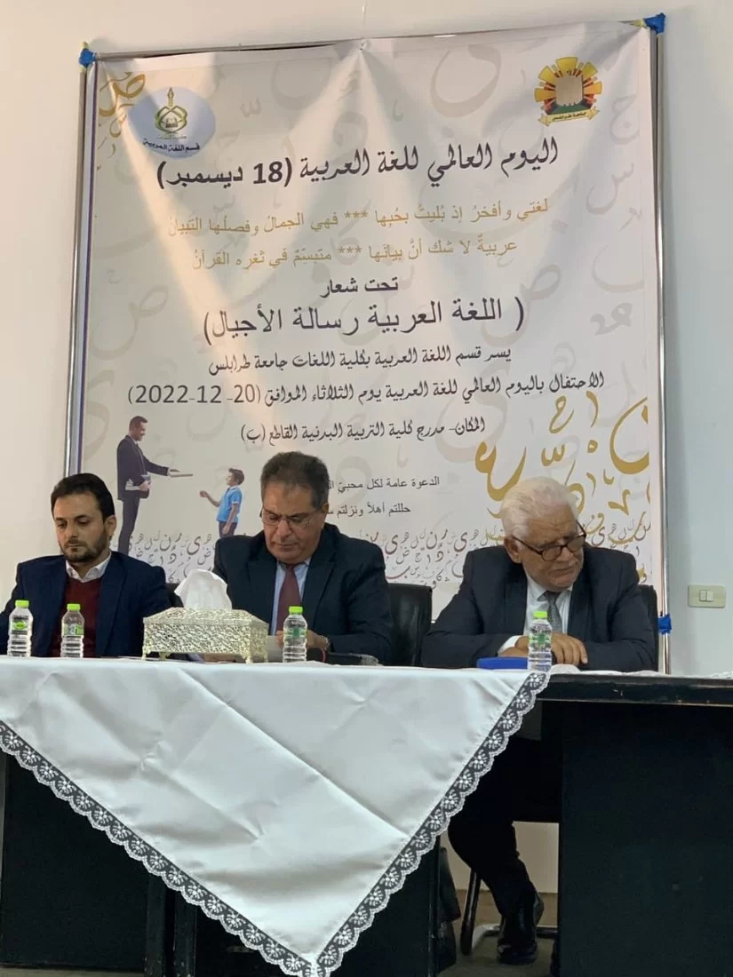 في محفل مهيب، و بحضور مكثف أقيمت صبيحة اليوم الثلاثاء الموافق 22/12/2022احتفالية قسم اللغة العربية باليوم العالمي للغة العربية بمدرج التربية البدنية على تمام الساعة التاسعة والنصف وبحضور السيد رئيس الجامعة، و السيدة عميد الكلية المكلف، والسيد رئيس قسم اللغة العربية،ورؤساء الأقسام العلمية، وأعضاء هيئة التدريس بقسم اللغة العربية، والأقسام العلمية، وجمع من طلبة كلية الدعوة الاسلامية، وعدد من الشعراء و البحاث، والأكاديميين.