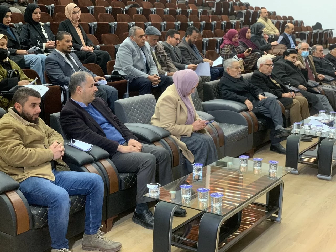 ثم توالت كلمات المشاركين في الحفل، فكانت الكلمة الأولى لمجمع اللغة العربية الليبي، التي ألقاها السيد الأستاذ الدكتور محمد مصطفى بن الحاج، نائب رئيس مجمع اللغة العربية الليبي، وعضو مجلسه التنفيذي. وكانت الكلمة الثانية للمركز الليبي للمحفوظات والدراسات التاريخية "مركز الجهاد سابقا"، ألقاها السيد الأستاذ الدكتور محمود أحمد الديك. ثم كانت كلمة الأكاديمية الليبية، ألقاها السيد الدكتور عبد الحكيم المهدي الشريف، رئيس قسم اللغة الفرنسية بالأكاديمية.