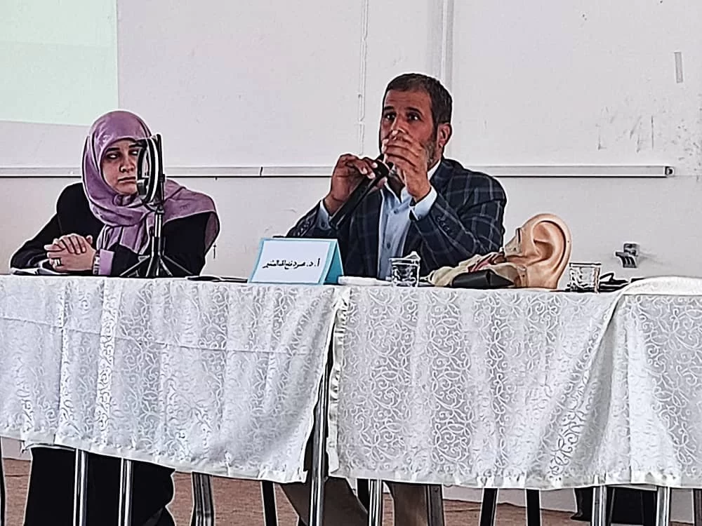 اقيمت يوم الاربعاء الموافق 10 مايو 2023م محاضرة ضمن الموسم الثقافي لقسم اللغة العربية لهذه السنة تحت عنوان ( العملية الكلامية رحلة الصوت من منطقة بروكا إلى منطقة فيرينك) ألقاها أستاذ اللسانيات الدكتور الفاضل محمود فتح الله الصغير بحضور وكيل الكلية الدكتورة عزة معاوي ورئيس القسم الدكتور مفتاح ناجي ومنسق الدراسة والامتحانات الدكتورة نعيمة الرمالي وبعض أعضاء هيئة التدريس وطلبة الدراسات العليا والمهتمين، وقد كانت محاضرة شيقة ماتعة ومفيدة أفاد الجميع منها، حيث قام بالاعداد والتنسيق لهذه المحاضرة كلا من الأستاذ علي أبو جمرة والأستاذة ريم الكبتي والأستاذة إيمان الحمروني.