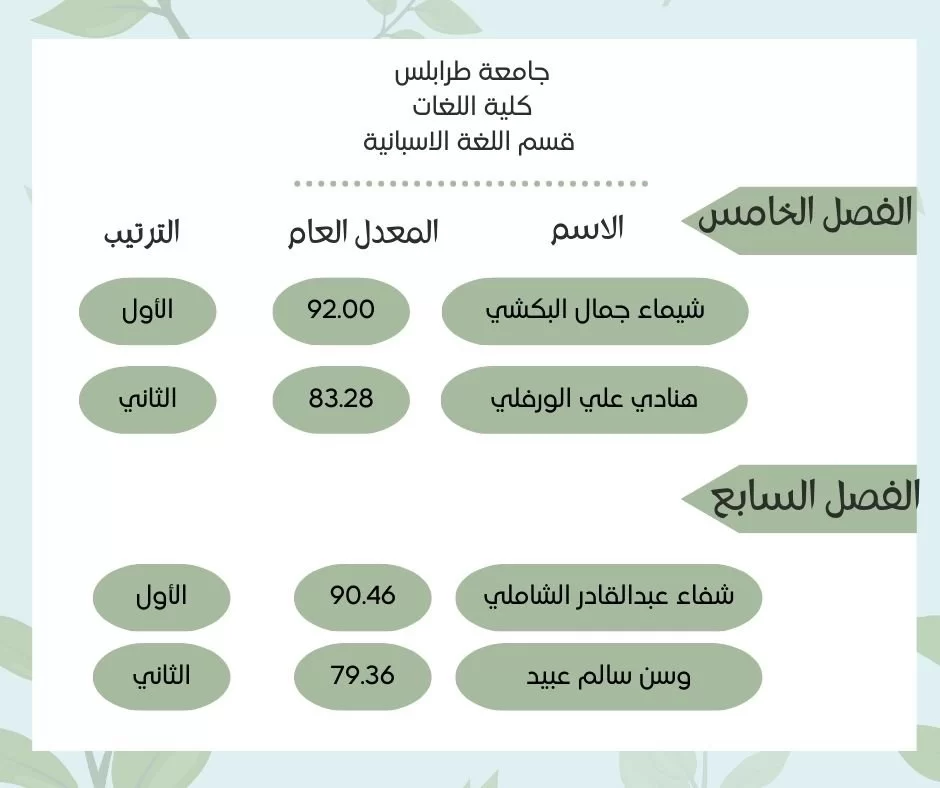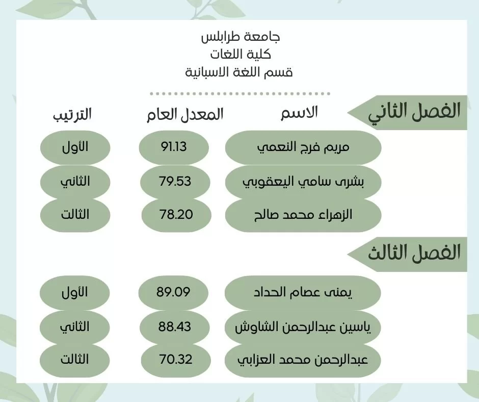 اوائل قسم اللغة الإسبانية للفصل الدراسي (خريف 2022-2023)