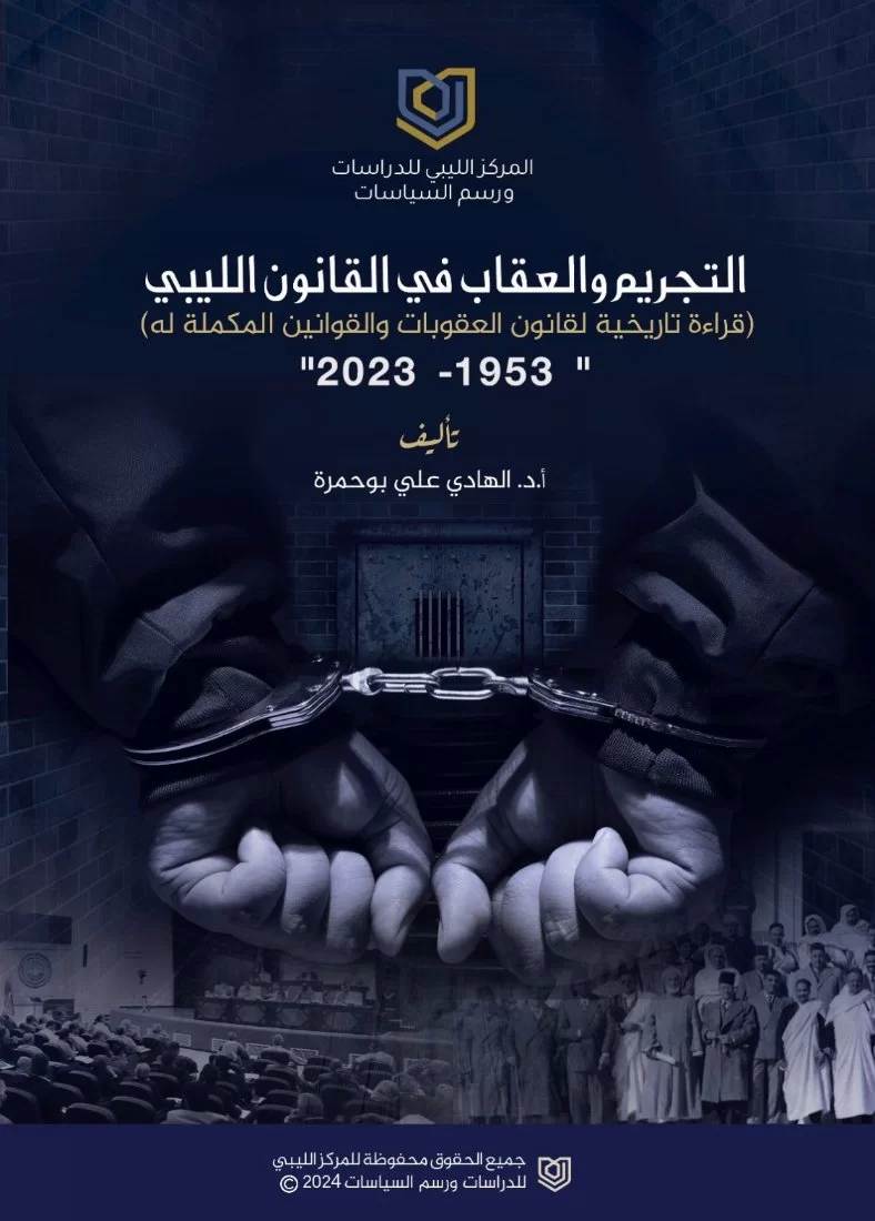 The Libyan Center for Studies and Policy Making recently published the book Criminalization and Punishment in Libyan Law (A Historical Reading of the Penal Code and Its Complementary Laws) 1953-2023 AD. By Dr. Al-Hadi Ali Bouhamra, a faculty member in the Criminal Law Department at the Facu