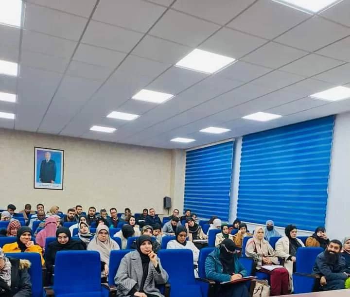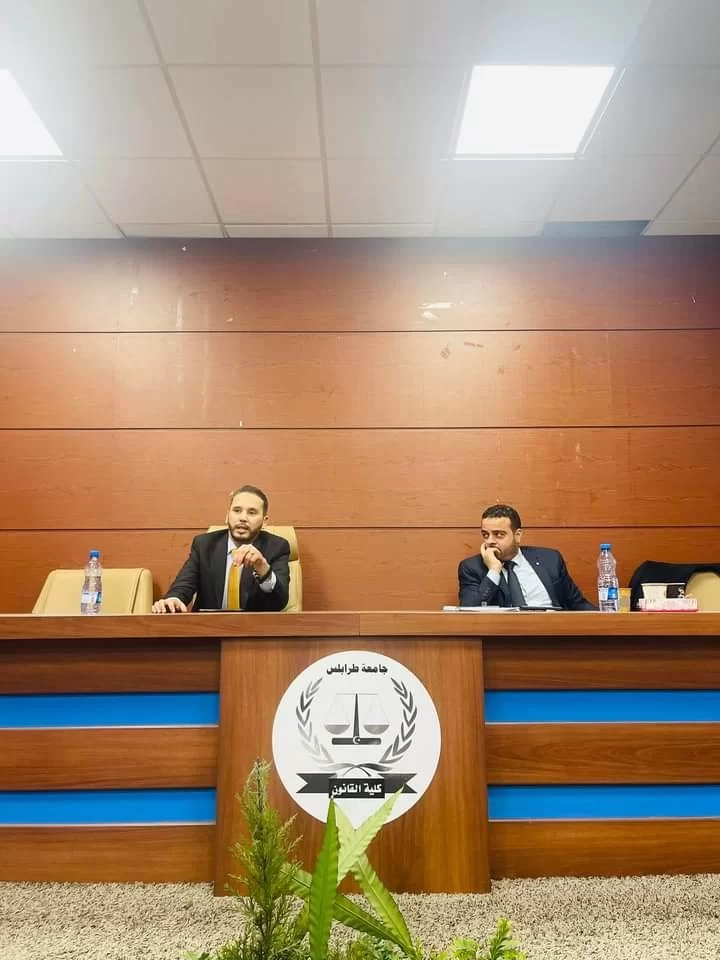 This morning, Monday, January 22, 2024, a dialogue session was held at the Faculty of Law at the University of Tripoli, entitled (The Principle of Separation of Powers as a Basic Guarantee for Implementing Constitutional Rules) delivered by a distinguished group of faculty professors, in the presence of faculty members, master’s and doctoral students, and interested persons and jurists.