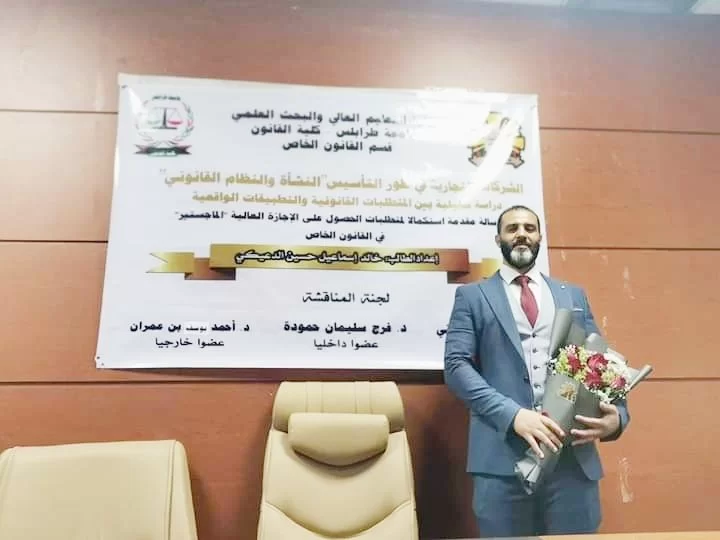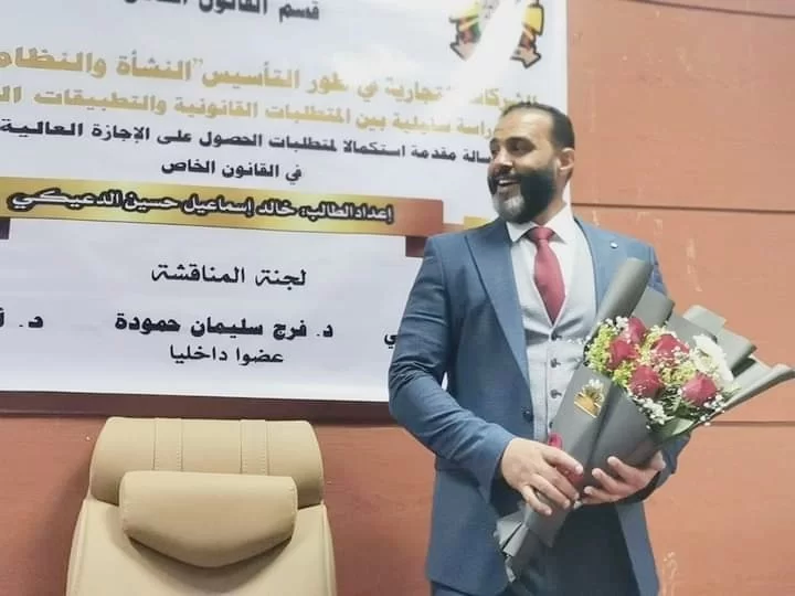 تم صباح اليوم الإربعاء الموافق الأول من فبراير مناقشة واجازة رسالة الماجستير بقسم القانون الخاص المقدمة من الباحث خالد اسماعيل الدعيكي، بعنوان:-