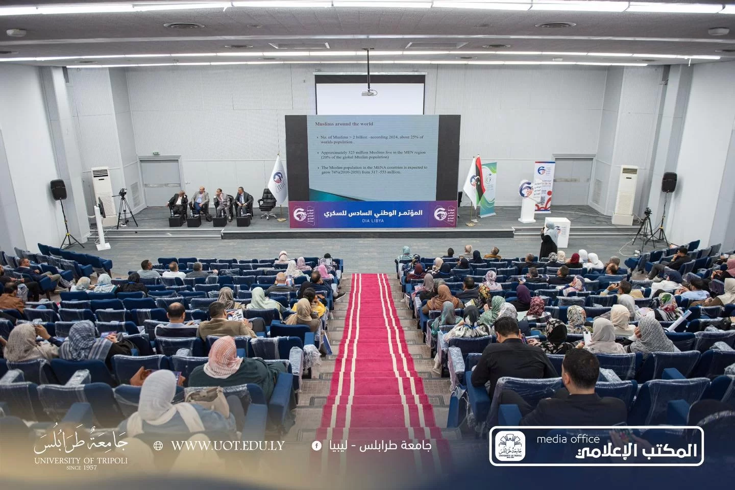استضافت كلية الطب البشري بجامعة طرابلس، اليوم الخميس الماضي الموافق، 14 نوفمبر 2024 م، المؤتمر الوطني السادس للسكري، الذي ينظمه مستشفى السكري والغدد الصماء - طرابلس. يجمع المؤتمر نخبة من أعضاء هيئة التدريس والأطباء من مختلف الجامعات والمستشفيات في جميع أنحاء الوطن، بالإضافة إلى استشاريين ليبيين يعملون في الخارج، و يهدف المؤتمر إلى تقديم أحدث ما توصل إليه العلم في مجال علاج مرض السكري، ومناقشة السياسات الوطنية المتعلقة بالمرض والعديد من ورش العمل المخصصة للأطباء، بالإضافة إلى مناقشة الأوراق والأبحاث العلمية التي تم قبولها للنشر.