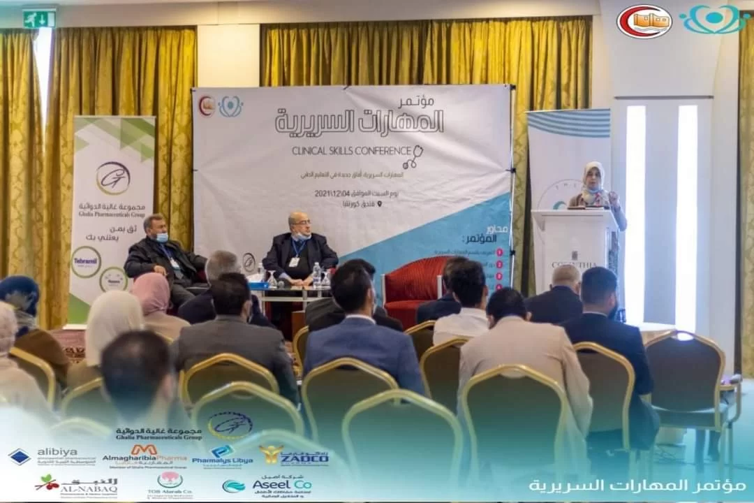 بالتعاون وبتنظيم من اتحاد طلبة الكلية، وبرعاية من مجموعة غالية الدوائية، أقام قسم المهارات السريرية بكلية الطب يوم السبت بفندق كورنثيا بالعاصمة طرابلس مؤتمر المهارات السريرية تحت عنوان (المهارات السريرية، أفآق جديدة في التعليم الطبي) وسط حضور العديد من الأساتذة الأفاضل وأعضاء هيئة التدريس المهتمين بهذا المجال وكذلك العديد من الضيوف الكرام من كليات الطب البشري في البلاد، حيث افتتح المؤتمر السيد/ عميد الكلية أ. د. عبدالعزيز الرابطي بكلمة رحّب بها بالضيوف، وقد قامت السيدة/ رئيس قسم المهارات د. لبنى المقهور خلال المؤتمر بالتعريف بقسم المهارات السريرية بشكل مفصل، وقام د. سيف الدين ظريف بشرح دور القسم في تطوير التعليم الطبي، وقام مكتب الشؤون الأكاديمية والبحث العلمي باتحاد الطلبة بعرض مرئي يُبيّن مدى استفادة الطلبة من قسم المهارات السريرية بناءً على استبانة قام بتعبئتها طلبة الكلية الدارسين لمقررات المهارات السريرية، وأيضًا قام رئيس قسم الدراسة والامتحانات د. توفيق بشية بعرض بعض الاحصائيات المتعلقة بتأثير المهارات السريرية على التحصيل العلمي للطلاب، في حين قام الأساتذة الأفاضل/ د. ابراهيم زبيدة، د. نجوى الجبو ود. نعيمة ظافر بعرض تجارب أقسام الجراحة، طب التوليد وأمراض النساء وطب الأطفال للتدريس بقسم المهارات تباعًا.