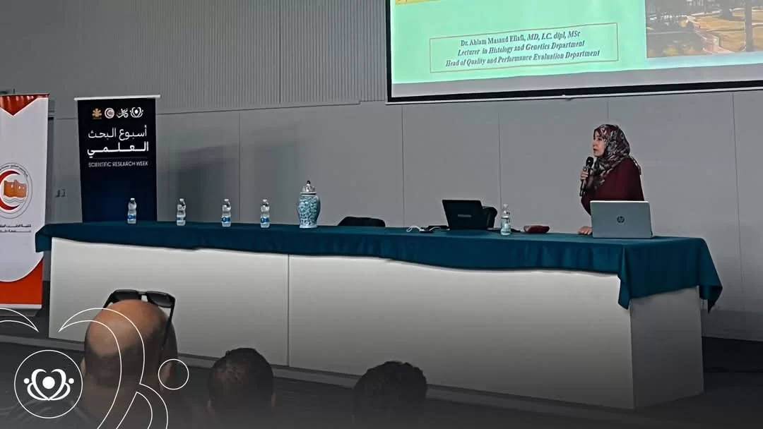 د جاءت هذه المشاركة في إطار تنفيذ الخطة الاستراتيجية لكلية الطب 2025-2030 في مجالات البحث العلمي/ الاعتماد والجودة, حيث يعتبر الطالب محور العملية التعليمية. وتوضيحاً لدوره في تعزيز ثقافة الجودة قدمت رئيس قسم الجودة محاضرة بعنوان دور الطالب في تطبيق نظم الجودة: البحث العلمي نموذجاً وذلك في اول يوم من أسبوع البحث العلمي السبت 30 أغسطس 2025م بمدرج الزواوي الذي نظمه قسم البحوث والاستشارات بالتعاون مع اتحاد الطلبة وجاء هذا الأسبوع البحثي تحقيقاً لمؤشرات معيار البحث العلمي للاعتماد المؤسسي وتنفيذا لمهام قسم البحوث والاستشارات. وقام قسم الجودة بتقييم ورش العمل والبرنامج عامة وذلك باستخدام QR استبانات تقييم برنامج تدريبي. https://forms.office.com/r/x1uts1cbtQ