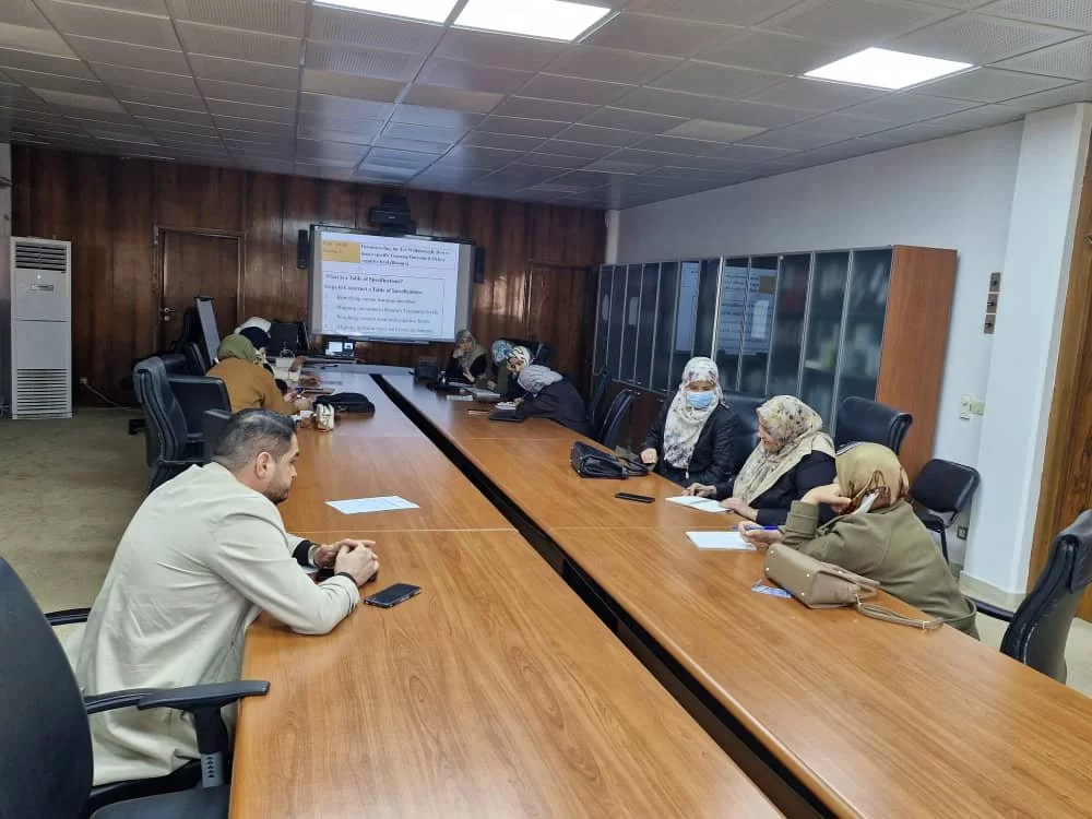 قام قسم الجودة وتقييم الأداء بالتعاون مع وحدة القياس والتقويم بعقد ورشة عمل يوم الاحد 21 ديسمبر 2025م حول بناء جدول المواصفات قدمتها/ أحلام مسعود اللافي رئيس قسم الجودة وتقييم الأداء. وكان المستهدفون هم منسقي الجودة والقياس والتقويم والمقررات الدراسية بالاقسام العلمية. وقد حضر 13 عضو هيئة تدريس.