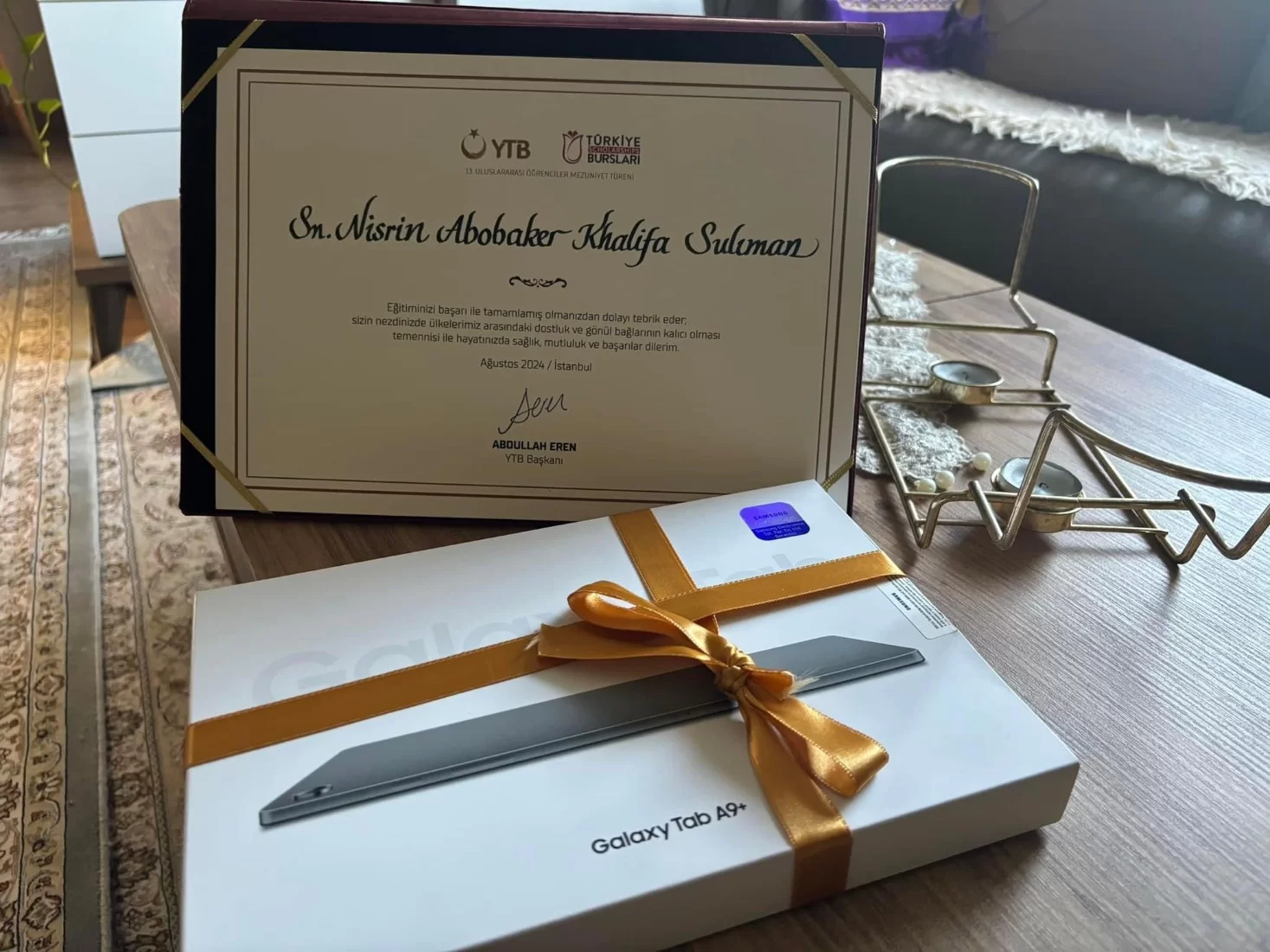 نجاح أخر يضاف لنجاحات خريجة قسم الصحافة الطالبة المتميزة نسرين سليمان، فبعد حصولها على منحة دراسية قبل سنتين لدراسة الماجستير في تركيا من بين آلاف الطلبة الذين تقدموا لهذه المنحة ومن جميع أنحاء العالم، ها هي تحصد نجاح أخر، حيث تم تكريمها من قبل هيئة المنح التركية التابعة لوزارة الثقافة بعد حصولها على درجة الإجازة العالية الماجستير بمرتبة شرف عالية كما تم وصفها ومن جامعة إسطنبول العريقة، فقد أكملت دراستها بمعدل كامل "4” فقد كانت الطالبة الوحيدة التي كرمت من المغرب العربي ومن دارسي مدينة اسطنبول، حيث استلمت الشهادة من والي مدينة اسطنبول.