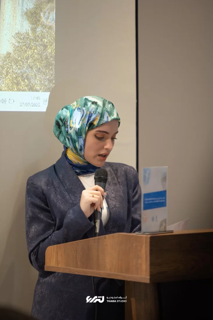 وقدّمت الطالبة فاطمة زميت عرضًا لنتائج الاستبيان الخاص بمشروعها، متناولًة أهم الإحصائيات وتحليل عينات من صفحات الأندية الرياضية على فيسبوك، موضحة الرسائل الخفية التي قد تسهم في تأجيج التعصب بين الجماهير.
