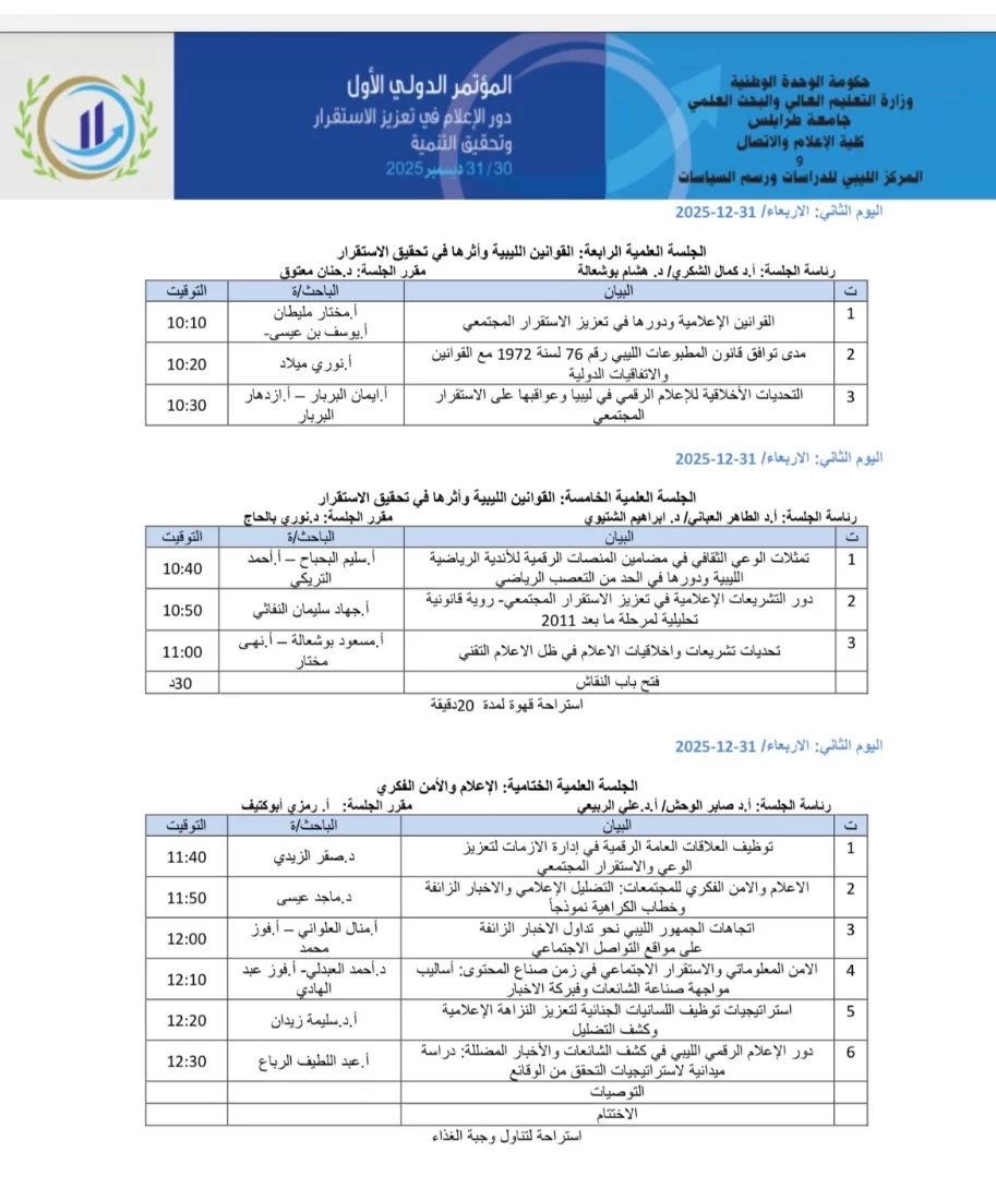 جدول أعمال المؤتمر الدولي الاول لكلية الإعلام والاتصال