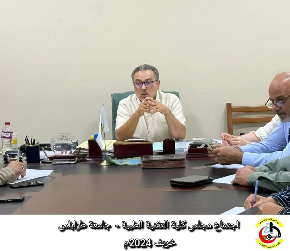 تم اليوم ، وبرئاسة الدكتور/ عبد الحكيم علي جنقر ، وبحضور منسقي مكتب المعامل بالكليات العلمية ومكتب متابعة تجهيز وتطوير المعامل بجامعة طرابلس ، عقد إجتماع في كلية التقنية الطبية . تهدف هذه الزيارة إلى متابعة سير العمل في تجهيز وتطوير المعامل بالكلية ، وذلك لضمان تقديم بيئة تعليمية متطورة تلبي احتيا