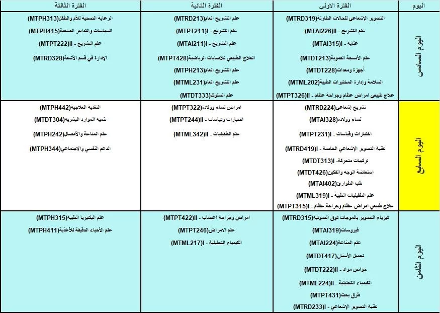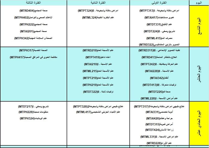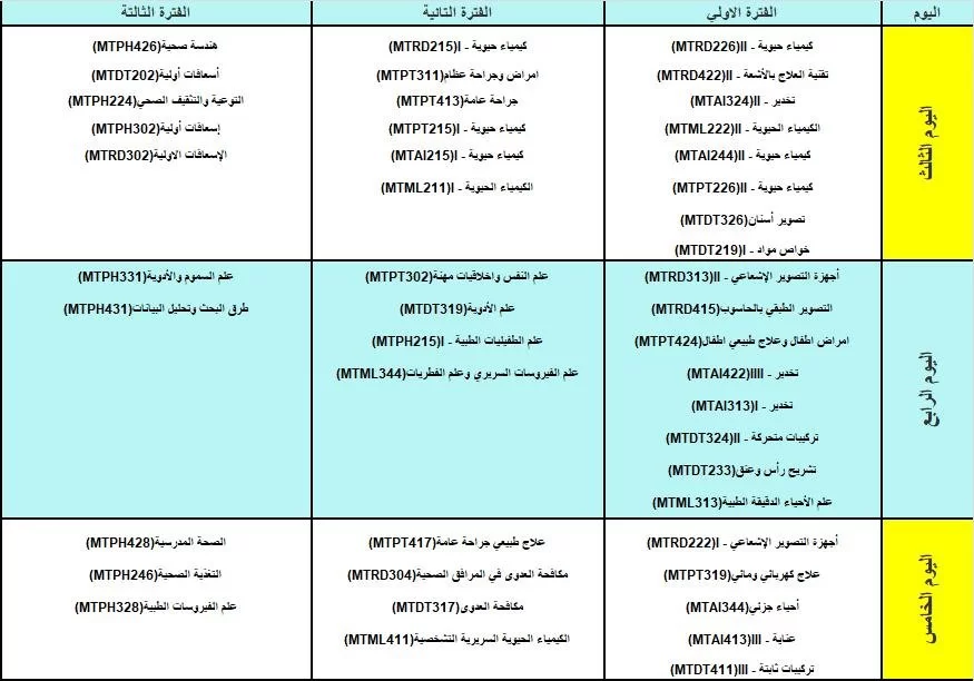 جدول الامتحانات النصفية والنهائية خريف 2023م