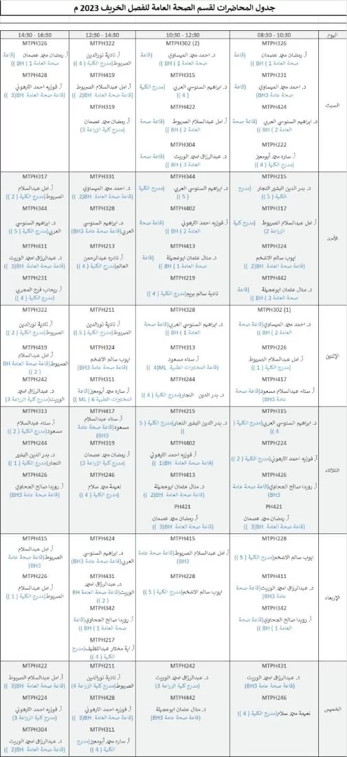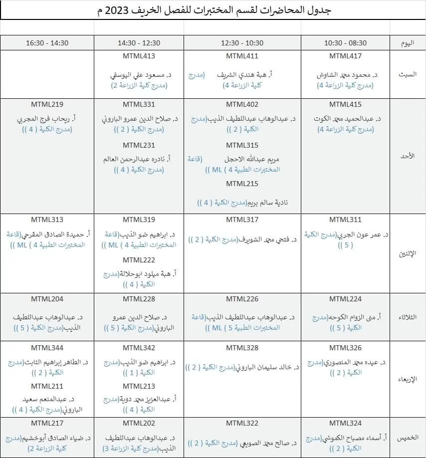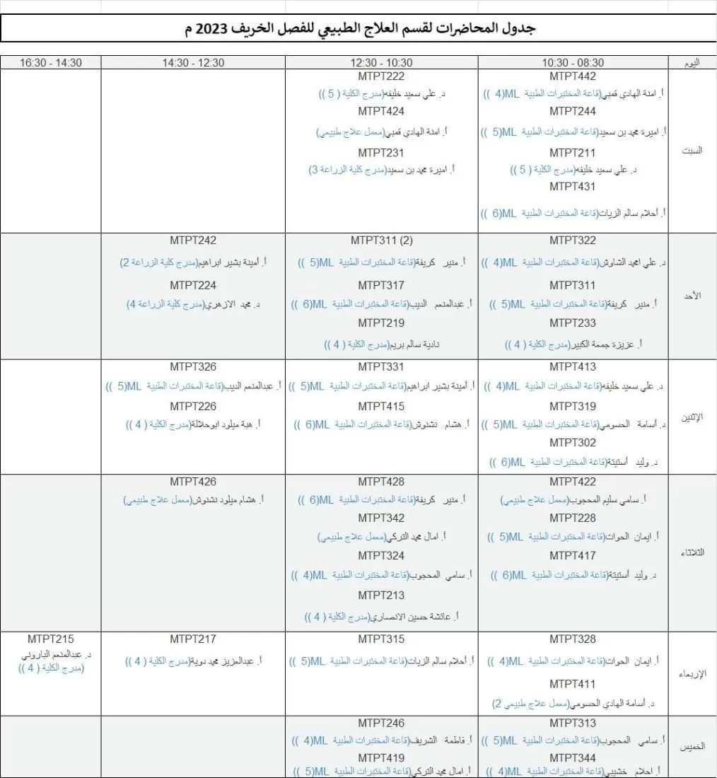 على جميع الطلبة أخذ العلم بأن البدء الفعلي في المحاضرات الدراسية للفصل الدراسي الخريف/ 2023م، إبتداء من يوم الغذ السبت الموافق 2023/12/16م،علـــيه نأمل منكم الاطلاع على الجداول الدراسية المرفقه لمعرفة الأماكن المخصصة للمحاضرات، أما بخصوص الطلبة الذين قاموا بتسليم نماذج التنزيل يدويا، نأمل منكم الالتزام أيضا بالمحاضرات التي تم تسجيلها في النموذج، حيث تم إدراج عدد كبير من الطلبات، ولم يتبق إلا القليل، وسيتم الانتهاء منهم في نهاية دوام يوم الاثنين القادم، متمنين لكم التوفيق دائما.
