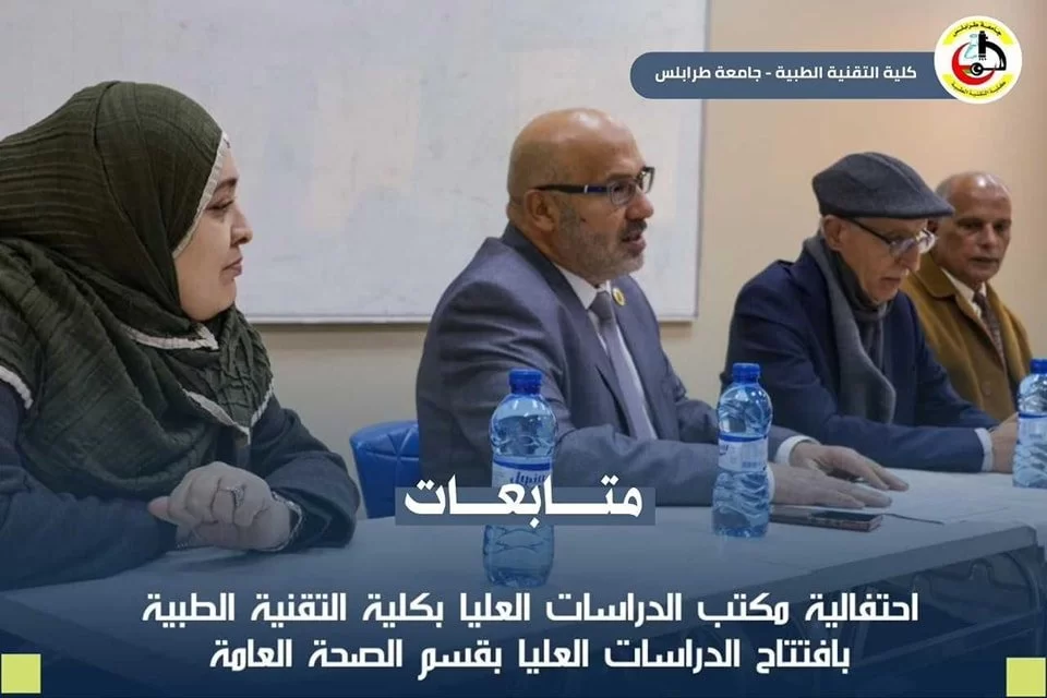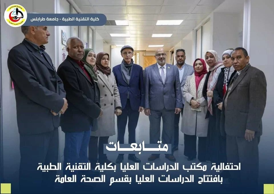تَمَّ بحَمْدِ الله افتتاح برنامج الدراسات العليا بقسم الصحة العامة "ماجستير" التغذية العلاجية. وقد كان البرنامج لهذا اليوم كالتالي: • كلمة لمدير مكتب الدراسات العليا بالكلية أ.د. بدرالدين النجار . • كلمة لرئيس الجامعة أ.د. خالد عون . • كلمة لمدير إدارة الدراسات العليا بالجامعة د.محمد أبو رواي. • كلمة لرئيس قسم الصحة العامة د.أمل الصربوط، وقد ألقت رئيس القسم كلمة ترحيب بالحضور، وتقديم الشُّكر لِكُل من ساهم في إعداد ملف الدراسات العليا بالقسم :• أ.د. جمال الخوجة. • د. أريج عبدالجواد. • د. منال الخالقي. • د. نجية الوسيع، وتَّم تقديم الشُّكر -أيضا- لإدارة الكلية لما قدَّمته من مَد يد العون والمساعدة للقسم. نسأل الله التَّوفِيق والسَّداد للجميع والنَّجاح للقسم في هذا البرنامج، وَكَافَّة البرامج التي يسعى القسم لإدراجها من ضمن برامج الدراسات العليا بالقسم (ماجستير التثقيف الصحي، ماجستير مكافحة العدوى). وتمنيَّاتِنا بمزيد من التَّطوِير من أجل الرَّفع من المستوى التًّعليمي للكُلِيَّة . "كُل الشُّكْر والتَّقْدِير لَكٌم"