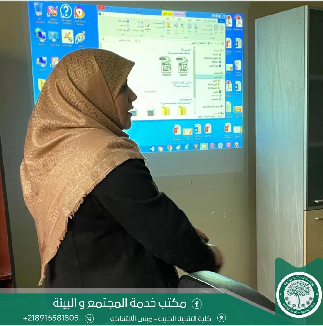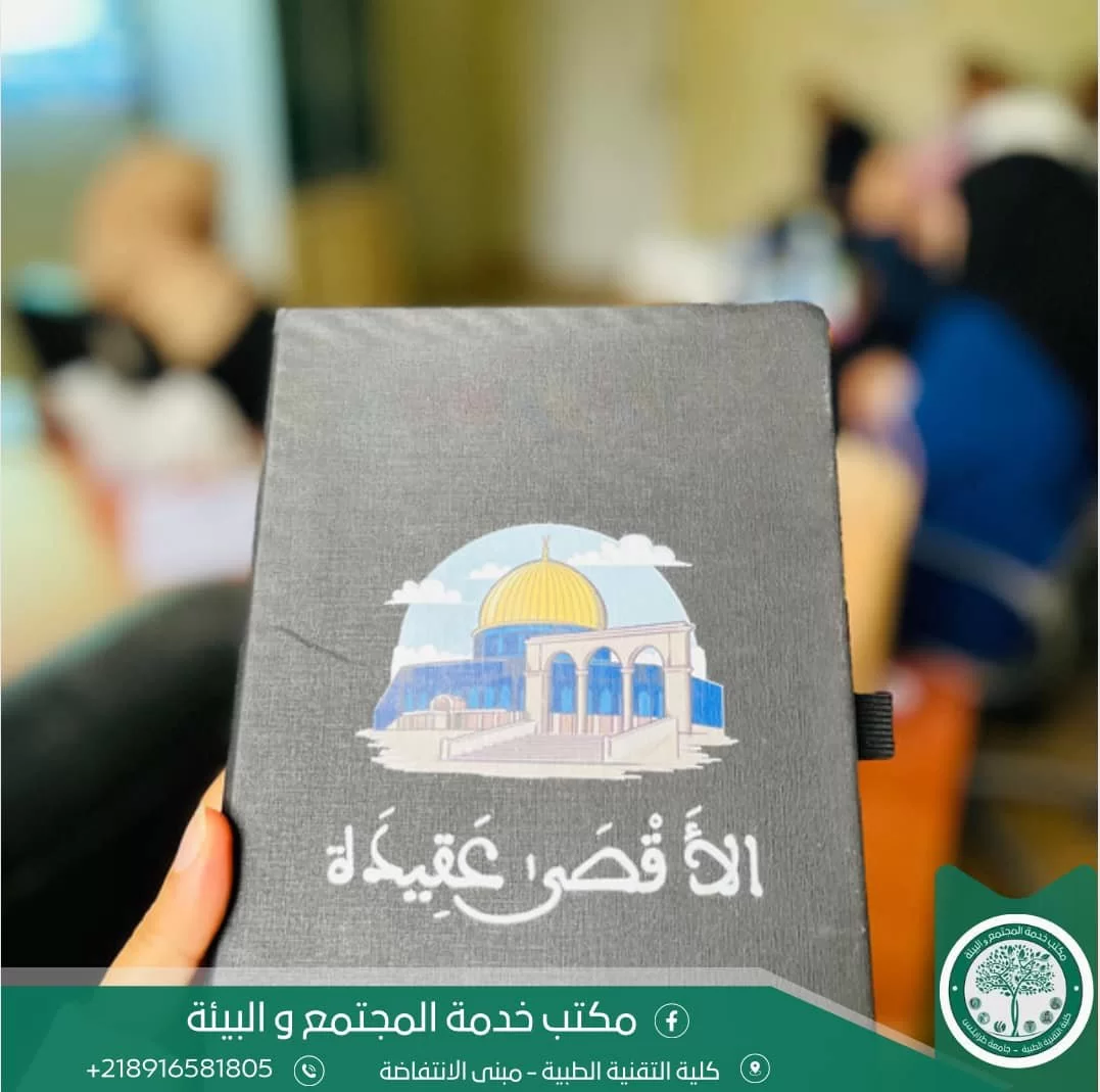 في إطار عمل وسعي كلية التقنية الطبية جامعة طرابلس للحصول على الإعتماد البرامجي، ومن منطلق دور مكتب خدمة المجتمع والبيئة بكلية التقنية الطبية، وسعياً من المكتب إلى تحقيق العديد من الأهداف، والحرص على مشاركة أبنائا الطلبة في تطوير وتحسين جودة الأنشطة التربوية والتوعية . عقد مدير مكتب خدمة المجتمع والبيئة بالكليَّة السَّيَّدة/أ.إيمان النعاس يوم السبت الموافق 03/02/2024 اجتماعًا ضم كلا من طلابنا الأعزاء بمختلف الأقسام العلمية، وقد تم خلال هذا الإجتماع عرض مقترح ملتقى (الأقصى عقيدة) .ومناقشة جميع نقاطه، وتوزيع المهام والأدوار بين الفرق الطلابية، وإعداد التقارير والاستبيانات اللازمة . "نَسْأل الله التَّوفِيق والسَّداد في تَطوِير الكُلِيّة وَنَيْل الاعْتِمَاد البَرَامِجِي والرَّفْع مِنْ مُسْتُوَاهَا "