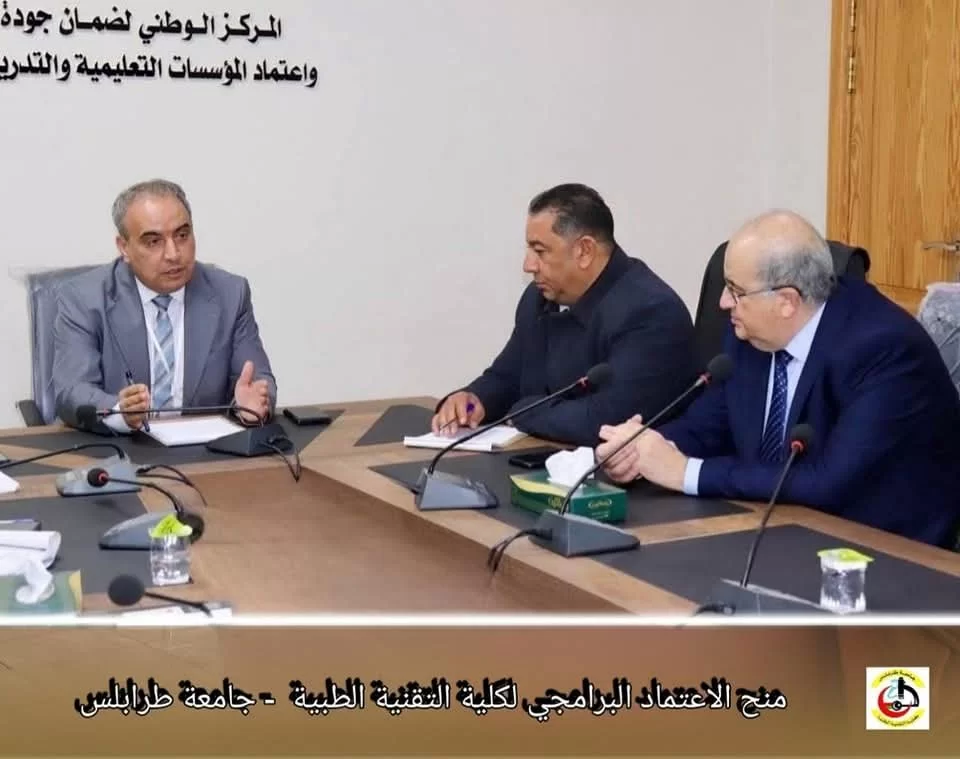 في إطار الاجتماع الذي جمع عمداء الكليات الطبية بجامعة طرابلس مع ممثلي المركز الوطني لضمان جودة واعتماد المؤسسات التعليمية والتدريبية ، تم اليوم الاحد الموافق 2025/02/23 م وبحمد الله الإعلان عن منح كلية التقنية الطبية الاعتماد البرامجي لمدة ثلاث سنوات ، كما تم تجديد الاعتماد المؤسسي لكلية الطب البشري لمدة ثلاث سنوات .