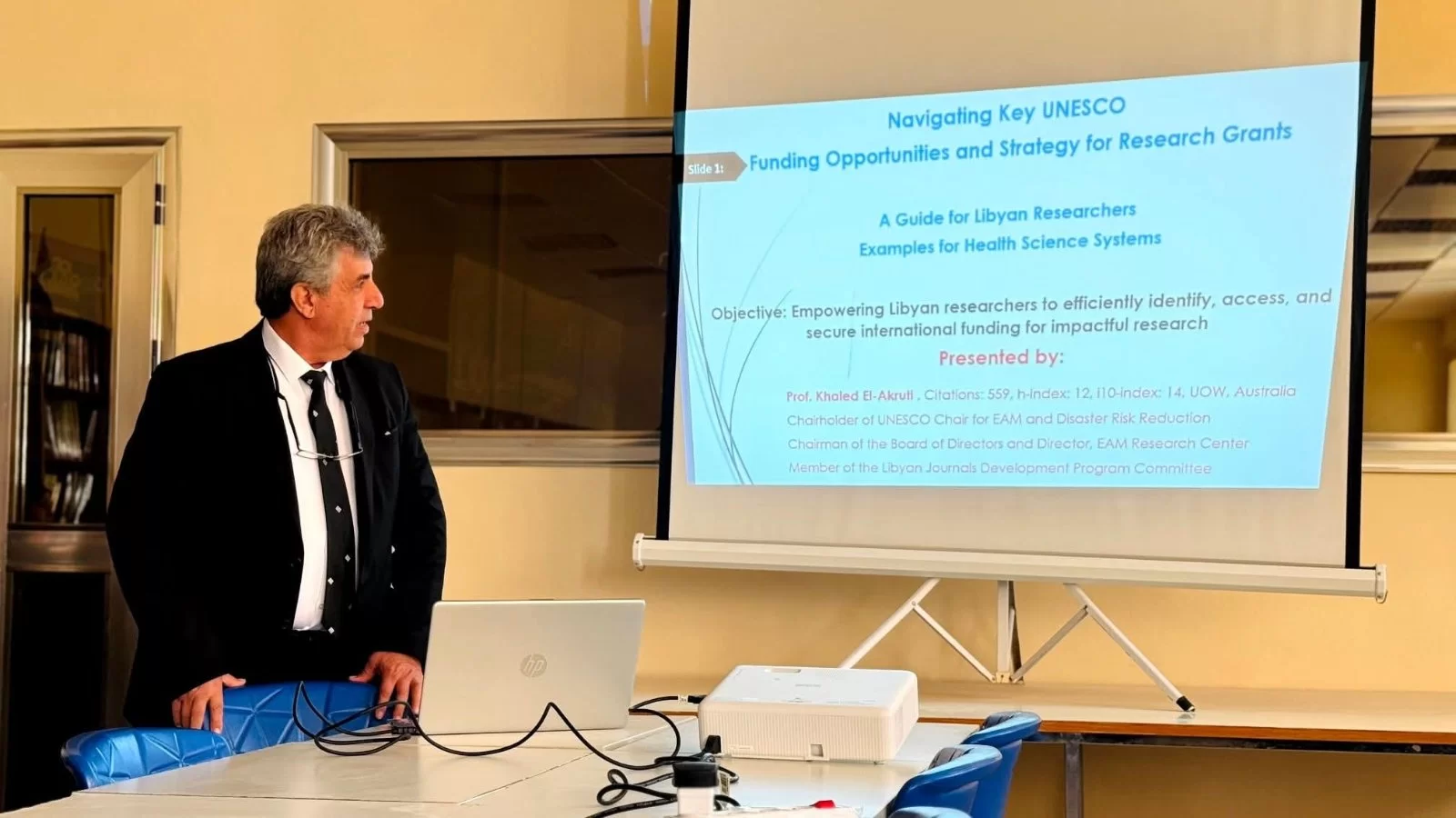 • أ. د. خالد العكروتي – رئيس كرسي اليونسكو لإدارة الأصول الهندسية والكوارث بالأكاديمية الليبية للدراسات العليا .