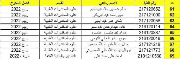 على الطلاب المدرجة أسماهم مراجعة قسم الخريجين بالكلية لإستلام أفادات التخرج