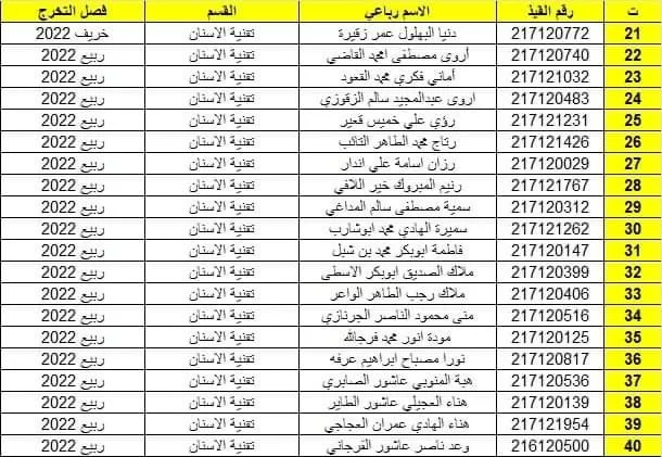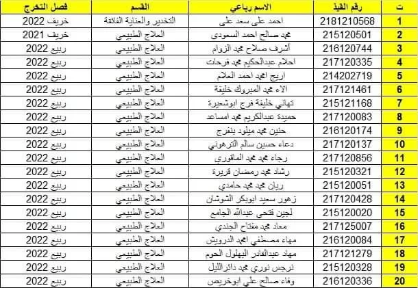 قائمة بأسماء الخريجين لاستلام افاداتهم