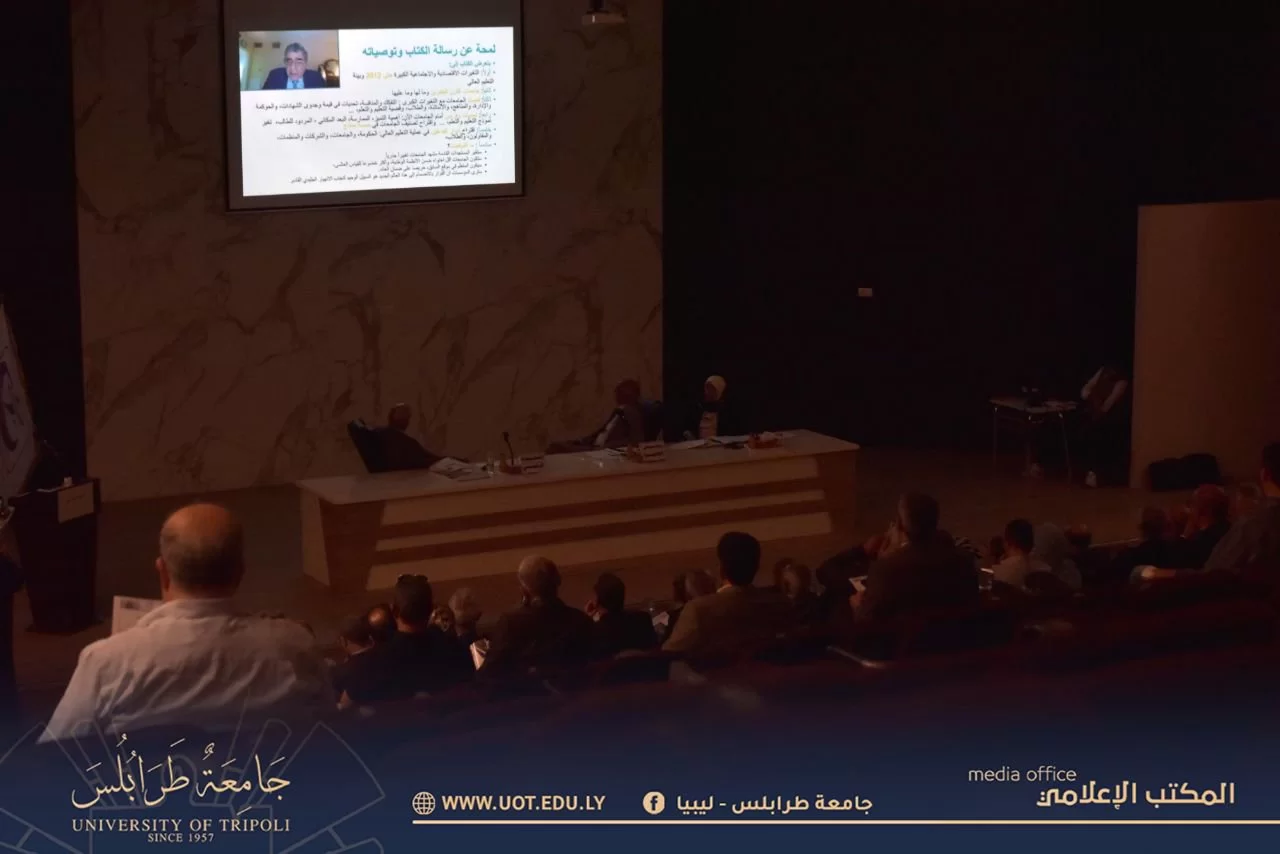أقيمت صباح اليوم الاثنين الموافق 5 يونيو 2023 م ندوة حوارية بعنوان: "انهيار جليدي قادم" داخل مدرج رشيد كعبار بتنظيم المنظمة الليبية للخبراء والاستشارات بحضور: السيد أ.د. خالد عون رئيس جامعة طرابلس، رفقة عدد من رؤساء الجامعات الليبية، والشخصيات السياسية والأكاديمية، وعمداء ووكلاء بعض الكليات والمهتمين بالمجال، حيث تناولت محاور ذات أهمية قصوى حول واقع التعليم العالي والبحث العلمي ومستقبله في طل التطورات التقنية التي تطوي الزمن والمسافات والجهد، وكذلك المال لتدخل الرقمنة والكيف أمام الكم، حيث أن تدفق المعلومات سيهز قواعد التعليم في ثورة غير مسبوقة في التعليم العام والخاص التي ستؤثر على سلوك المتعلمين وأنماطهم.