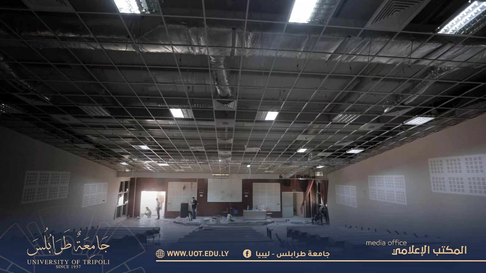 مقتطفات من صيانة مدرجات كلية الطب البشري بجامعة طرابلس والمرافق التابعة لها التي جاءت ضمن الخطة التي وضعتها رئاسة جامعة طرابلس سعياً منها لتوفير بيئة تعليمية ملائمة لأبنائها الطلبة. كما نتقدم بأسمى آيات التقدير والامتنان لكافة الجنود العاملين على إتمام هذا الإنجاز.