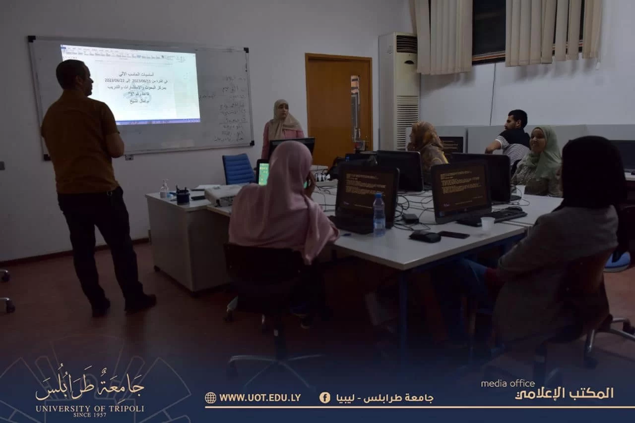 اختتمت اليوم الخميس الموافق 22 يونيو 2023م دورة تدريبية بعنوان "أساسيات الحاسوب" التي أشرفت عليها المدربة م. آمال الشيخ بتنظيم مركز البحوث والاستشارات والتدريب بجامعة طرابلس، وقد استمرت لمدة خمس أيام متتالية إبتداءً من يوم الأحد الماضي الموافق 11 يونيو 2023م حتى اليوم الخميس مستهدفة موظفي كلية العلوم.