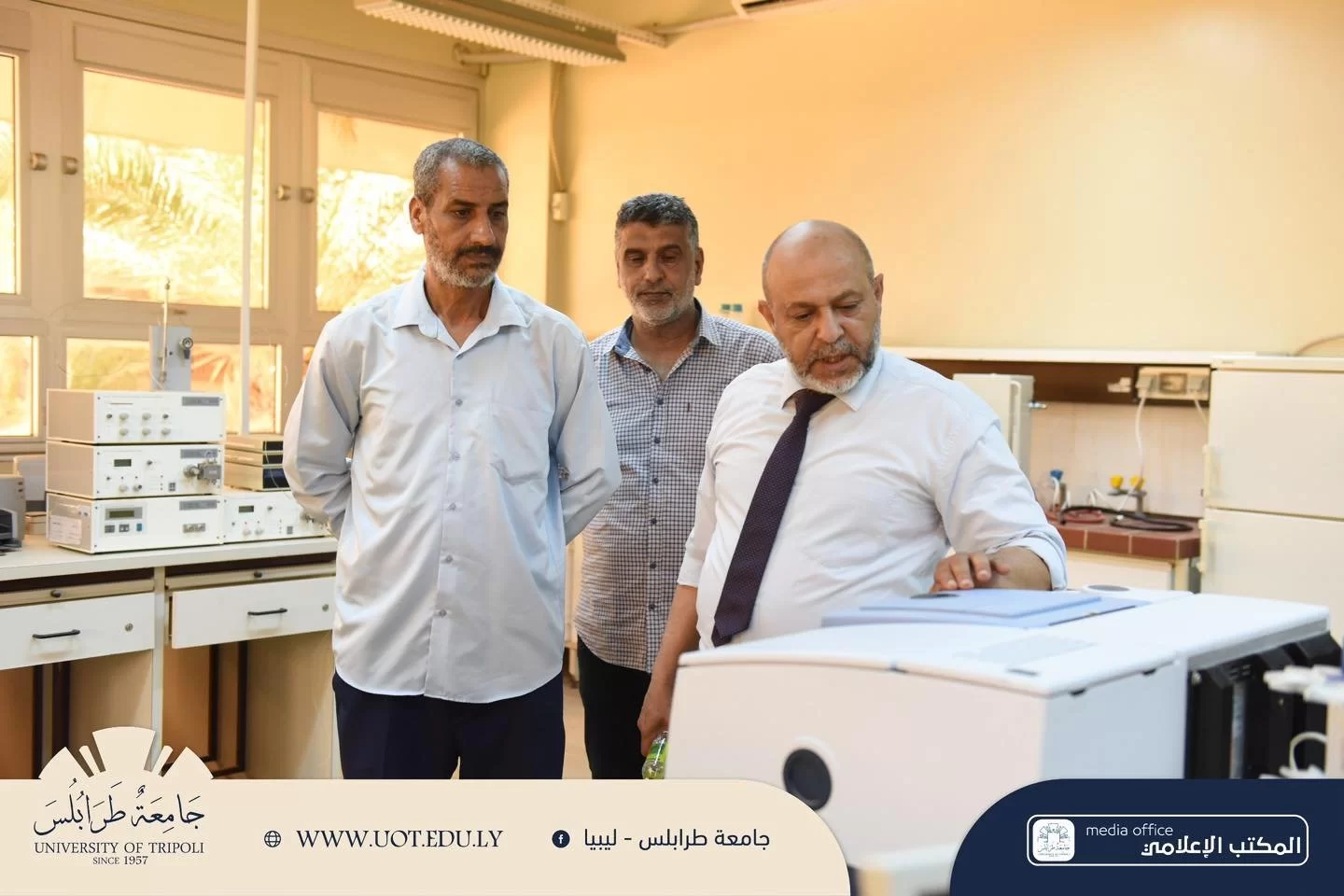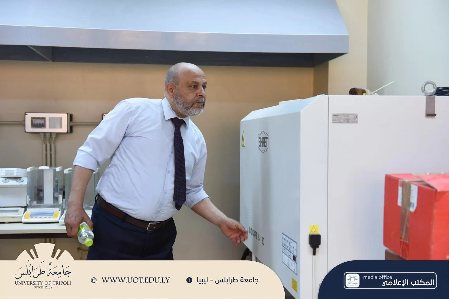 قام السيد أ.د. خالد غومة رئيس جامعة طرابلس المُكلف، اليوم الخميس الموافق 13 يونيو 2024م بجولة ميدانية داخل كليات جامعة طرابلس وما تحتويه أروقتها من معامل ومرافق، برفقة السيد أ. عبد الله الترهوني مدير المكتب الإعلامي بالجامعة، ركز رئيس الجامعة خلال جولته على تفقد معامل الكليات التي تم استلامها ودخلت مرحلة التجهيز والتركيب، حيث كرست رئاسة الجامعة جهودها مؤخرًا في توفير معامل تعليمية مجهزة بأحدث التقنيات للرفع من المخرجات التعليمية، وضمان التدريب العملي للطلبة، وتوفير بيئة تعليمية ملائمة تليق بأبناء هذا الصرح العلمي.