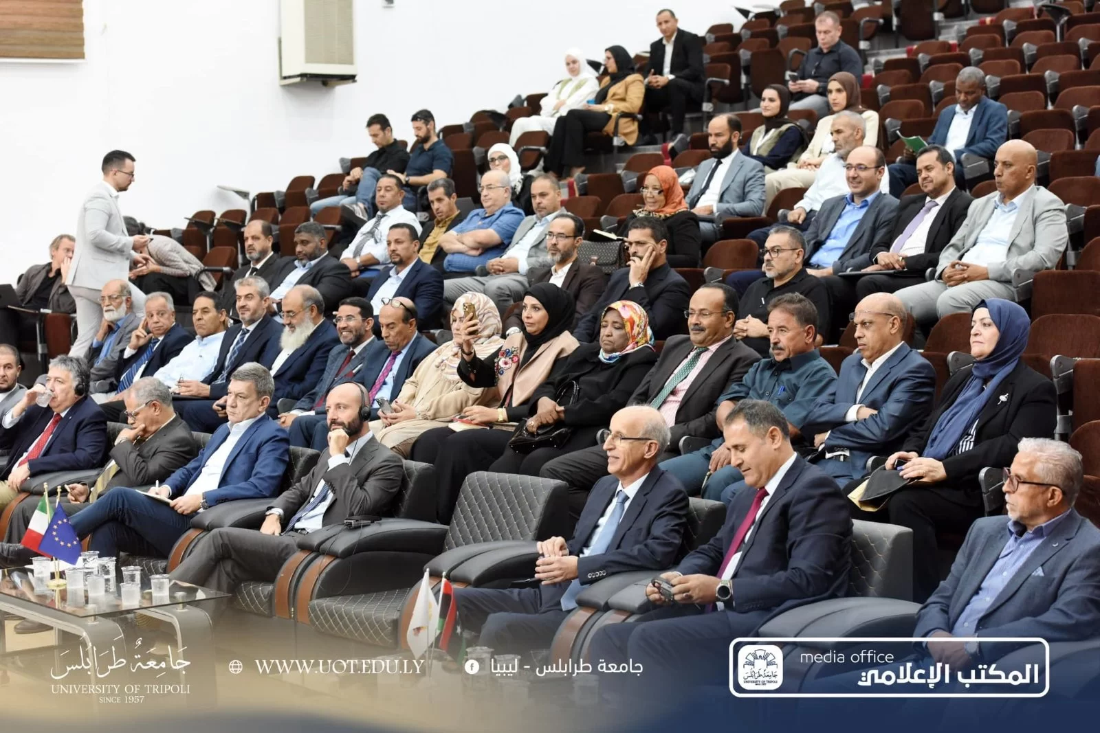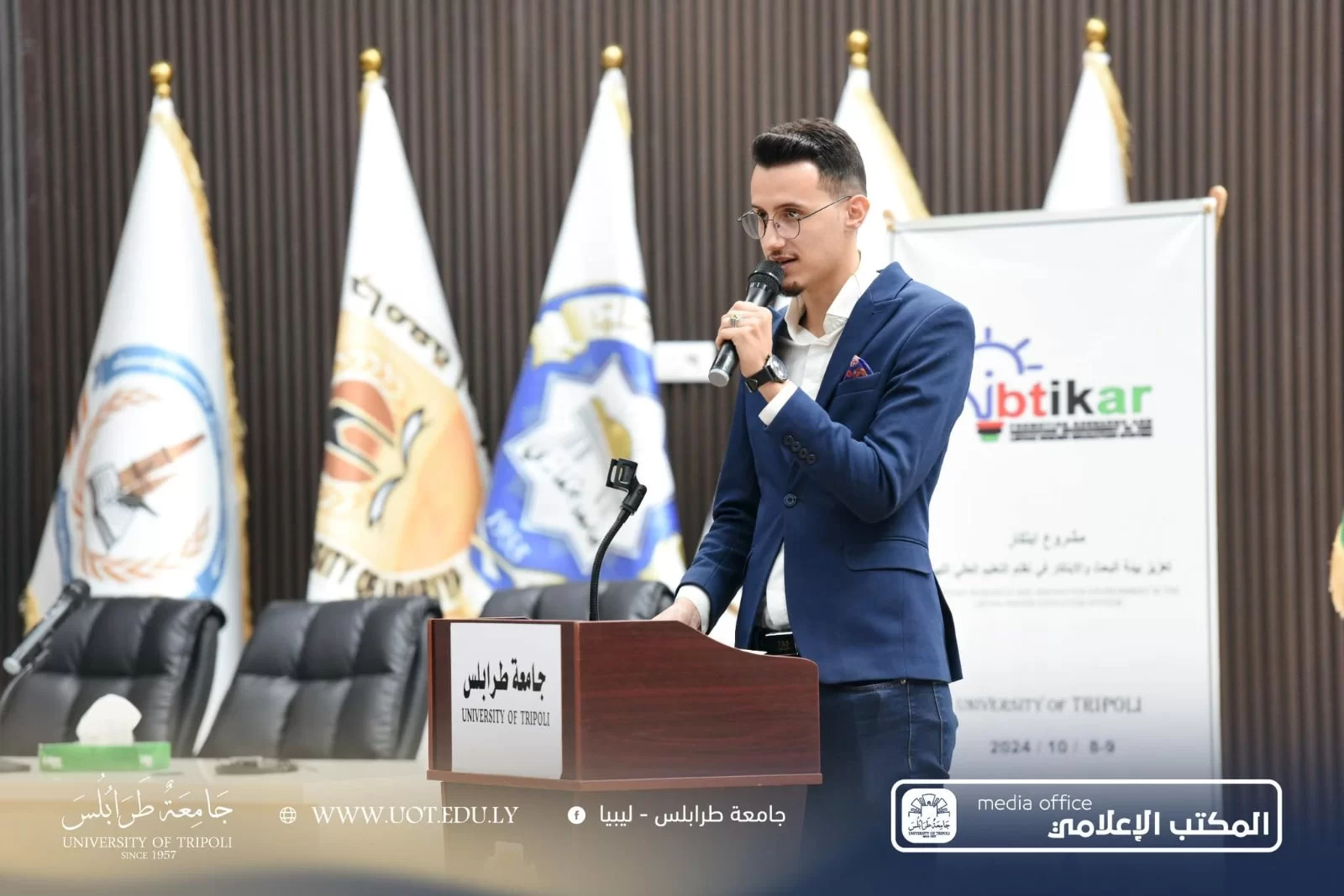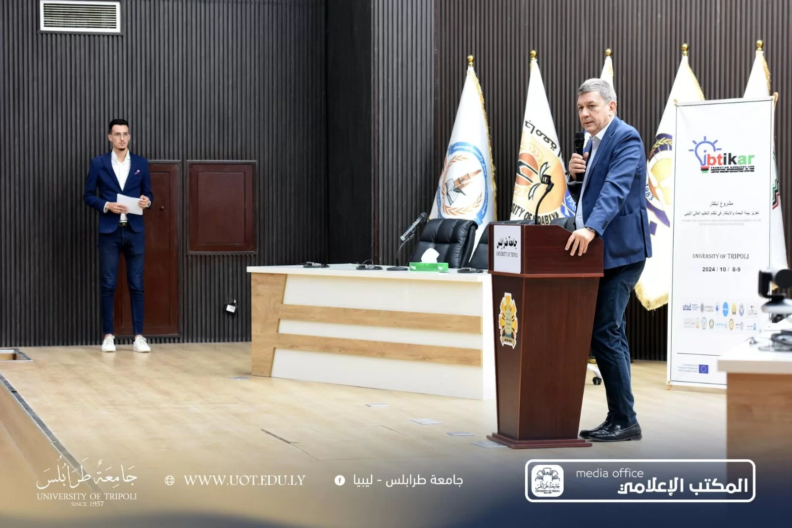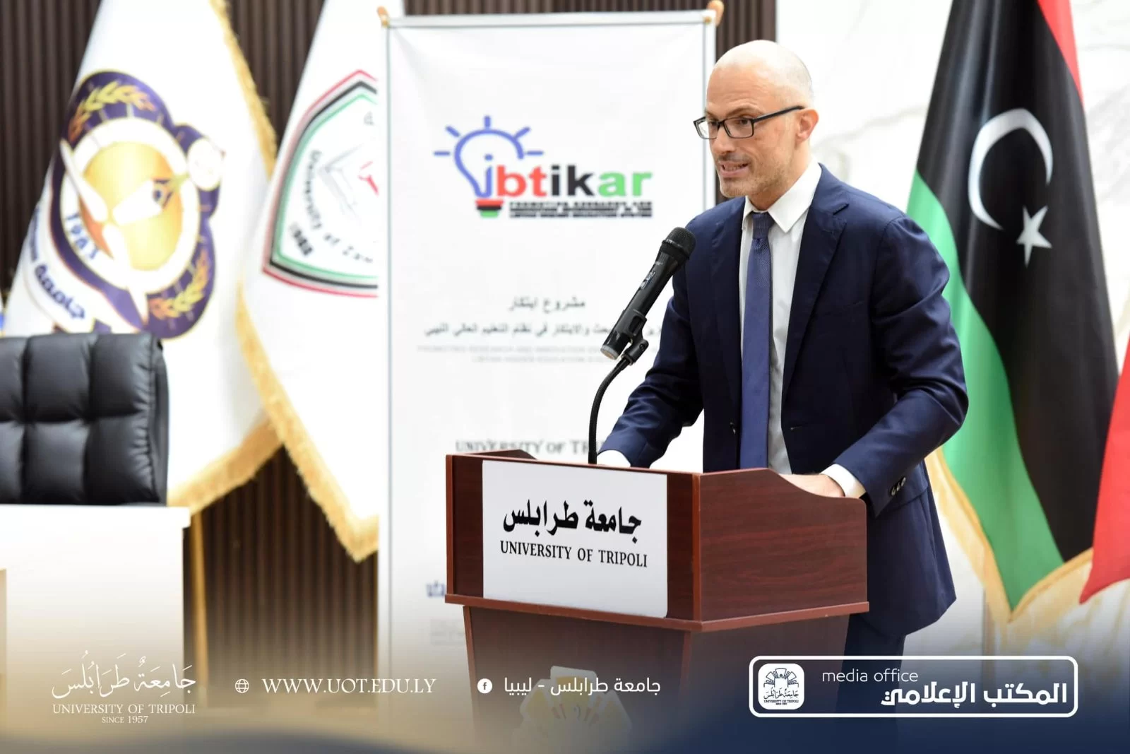استضافت جامعة طرابلس صباح اليوم الثلاثاء، الموافق 8 أكتوبر 2024 م احتفالية اختتام مشروع "ابتكار تعزيز بيئة البحث والابتكار في نظام التعليم العالي والبحث العلمي" شهدت الاحتفالية حضور عدد من الشخصيات البارزة، منهم: السادة سفير الاتحاد الأوروبي وسفير إيطاليا في ليبيا، رفقة رئيس جامعة طرابلس، وممثل وزارة التعليم العالي والبحث العلمي، وممثل الهيئة الليبية للبحث العلمي، ومدراء مكاتب التعاون الدولي بالجامعات الليبية والجامعات المشاركة في المشروع. الجدير بالذكر أن المشروع مُقام تحت إشراف اتحاد الجامعات الأورومتوسطية وبدعم الاتحاد الأوروبي، ويهدف إلى تحسين وتطوير مراكز البحوث والاستشارات والتدريب في الجامعات الليبية. يمثل هذا مشروع فرصة فريدة لتعزيز القدرات الأكاديمية والبحثية في الجامعات، بالإضافة إلى فتح آفاق جديدة للابتكار والإبداع.