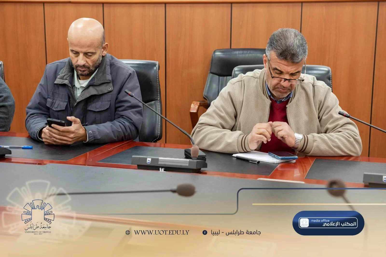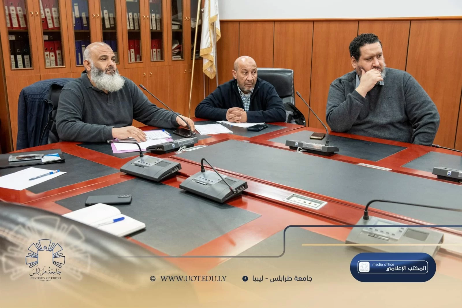 شهدت قاعة الاجتماعات بمبنى رئاسة جامعة طرابلس صباح اليوم الأحد، الموافق 26 يناير 2025 م، اجتماع لجنة الدراسات العُليا بالجامعة. وقد حضر الاجتماع السيد مدير إدارة الدراسات العُليا وعدد من رؤساء أقسام الدراسات العُليا من مختلف كليات الجامعة.تناول الاجتماع بنود عدة، أبرزها تسجيل طلبة الدراسات العُليا لمرحلتي الماجستير والدكتوراه في المنظومة الإلكترونية للجامعة. كما تم مُناقشة سُبل تحقيق الأهداف المرجوة والتي يعد أهمها توطين الدراسات العُليا بالداخل.