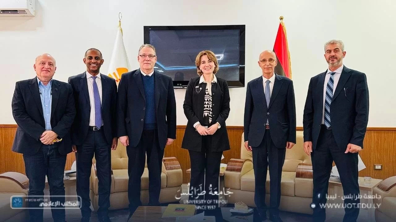 استقبل رئيس جامعة طرابلس، الأستاذ الدكتور خالد عون، صباح اليوم الثلاثاء الموافق 4 نوفمبر 2025م، وفدًا رفيع المستوى من برنامج الأمم المتحدة الإنمائي (UNDP) برئاسة السيد عبد الله الدردري، الأمين العام المساعد للأمم المتحدة والمدير الإقليمي للدول العربية، يرافقه كلٌّ من السيدة صوفي كيمخَذْزة، الممثلة المقيمة لبرنامج الأمم المتحدة الإنمائي لدى ليبيا، والسيد محمد صالح، نائب الممثل المقيم.