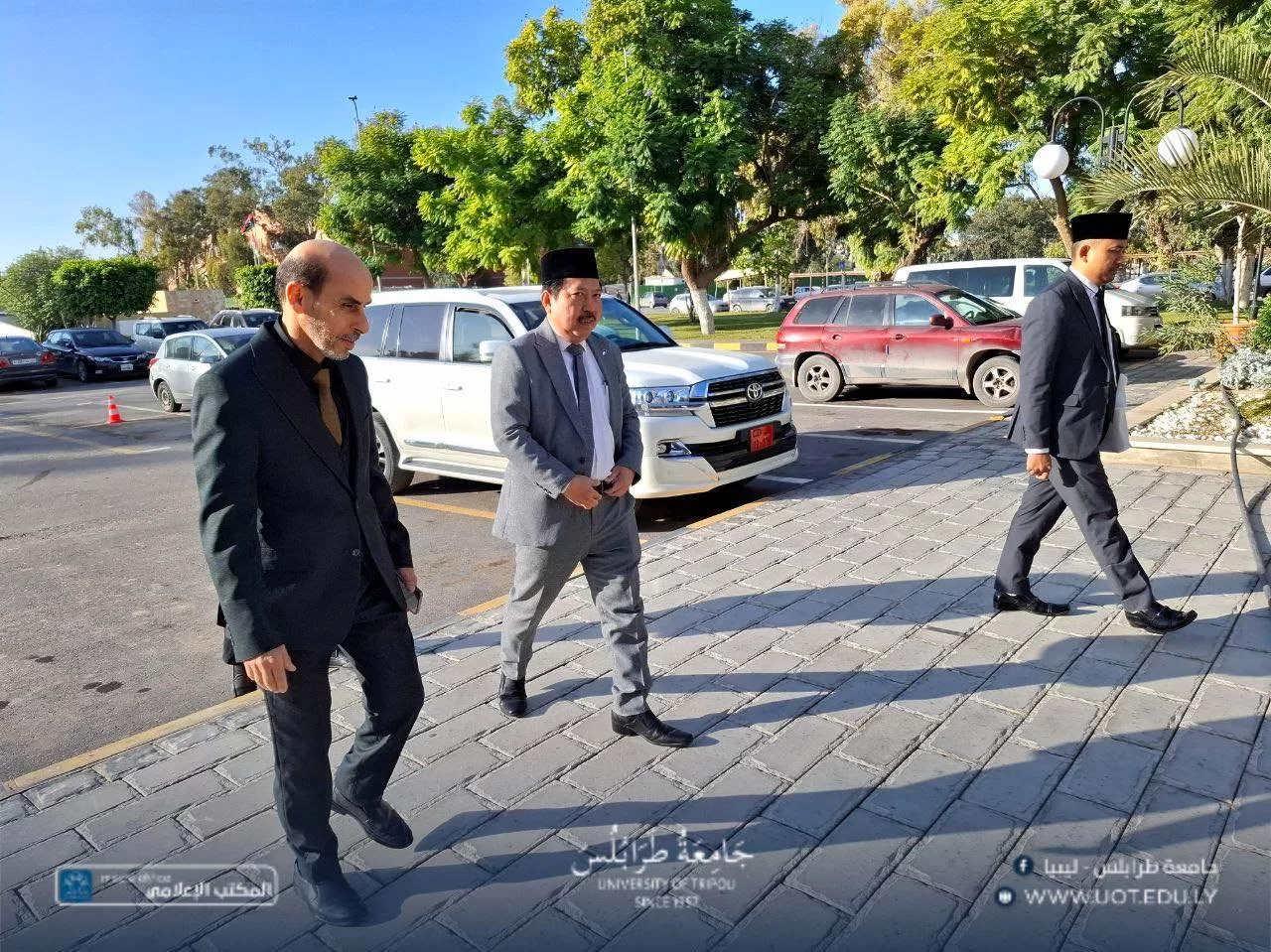 استقبل السيد أ.د. خالد عون، رئيس جامعة طرابلس، صباح أمس الخميس، الموافق 4 ديسمبر 2025 م، السيد د. ديدي أحمد رفاعي، القائم بأعمال سفارة جمهورية إندونيسيا لدى ليبيا، بحضور السيد د. علي مصدق، وكيل الجامعة للشؤون الطلابية، وذلك بصدد بحث علاقات التعاون الأكاديمي والعلمي بين الطرفين.خلال اللقاء، نوقشت سبل دعم برامج تبادل الخبرات العلمية والثقافية، وإمكانية إبرام مذكرات تفاهم في المجال العلمي، وتطوير المناهج، وتبادل الخبرات بين أعضاء هيئة التدريس، علاوةً على التعاون في مختلف مجالات العلوم.أكد السيد عون حرص جامعة طرابلس المستمر على الانفتاح والانخراط مع الجامعات الإقليمية والدولية، وبناء شراكات تسهم في رفع جودة التعليم والبحث العلمي.ختامًا، أشار ممثل الجامعات الإندونيسية إلى أن تلك الجامعات تُعد من المؤسسات الأكاديمية المرموقة، التي تمتاز بتنوع واسع في تخصصاتها العلمية والإنسانية، وتحتوي على مراكز بحثية متقدمة في الطاقة المتجددة والصناعات الإبداعية، مما يؤهلها لفتح آفاق تعاون واسعة.
