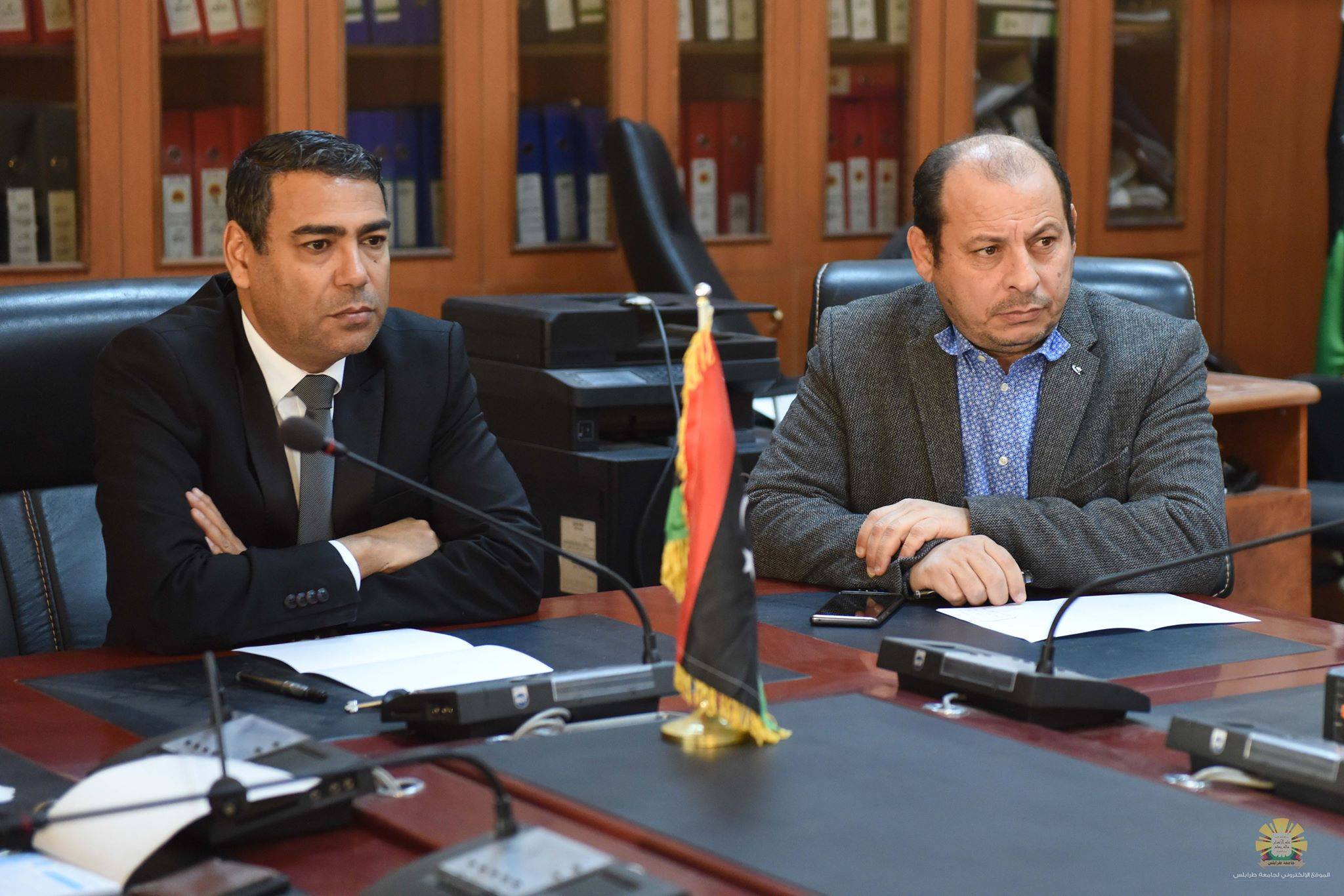 اجتمع صباح اليوم الاثنين الموافق الأول من ابريل 2019 بقاعة الاجتماعات الرئيسية أعضاء مجلس الجامعة، وذلك برئاسة الأستاذ الدكتور "نبيل النطاح" رئيس جامعة طرابلس، وبحضور السادة الوكلاء وعمداء الكليات والكاتب العام ونقيب أعضاء هيئة التدريس ونقيب موظفي الجامعة والمسجل العام ورئيس مكتب الجودة، ورئيس الاتحاد العام لطلبة جامعة طرابلس. حيث تم اعتماد محضر الاجتماع الثالث للعام الحالي، بعدها تم مناقشة بنود الاجتماع والمتمثلة في مذكرة السيد عميد كلية التربية جنزور والمتضمنة مقترح إقامة ورشة عمل حول تفعيل أدوات التقويم المبني على أداء مدارس التعليم الأساسي خدمة للمجتمع، كما تم عرض مقترح عميد كلية الاقتصاد بخصوص تأسيس القسم المالي والصيرفة الإسلامية، ومناقشة اعتماد اليوم الوطني لأخلاقيات البحث العلمي، وعرض المقترح المقدم من مدير مركز اللغات بشأن اللائحة التنظيمية للمركز.