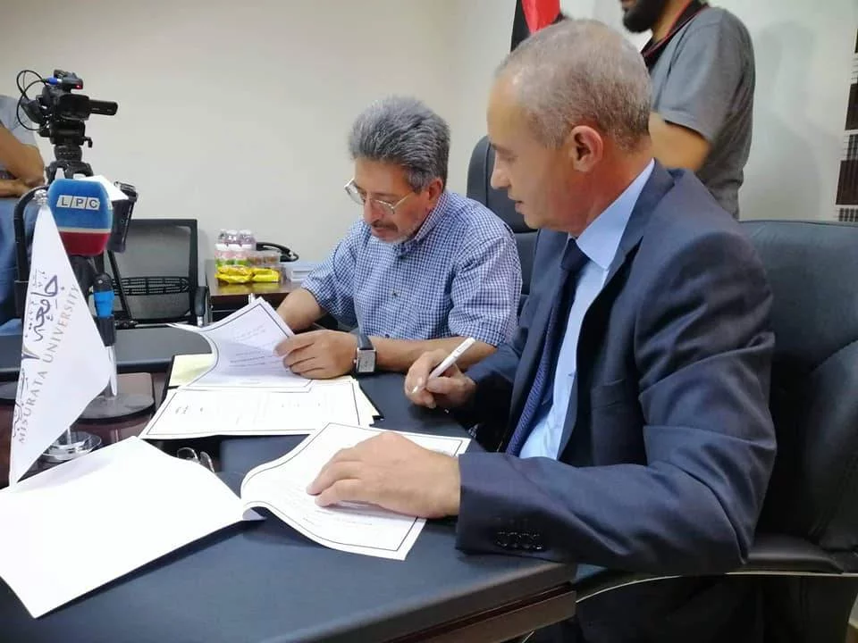 وقعت صباح اليوم الخميس الموافق الخامس من سبتمبر2019م، بكلية الفنون والإعلام جامعة مصراته "اتفاقية تعاون علمي وثقافي وتبادل للخبرات" بين عميد كلية الفنون والإعلام "أ. د. عبدالكريم كندير" وعميد كلية الفنون والإعلام بجامعة مصراته "أ. د. فتحي اميمه" حيث نصت الاتفاقية على تعاون أعضاء هيئة التدريس في البحوث المشتركة، وتباذل المطبوعات ورسائل الماجستير و اطروحات الدكتوراه ،وتذليل كافة الصعوبات التي تواجه طلاب كلية الفنون والاعلام بجامعة طرابلس ومصراته .يدكر أن هذه الاتفاقية سيتم اعتمادها لاحقاً من قبل رئيس جامعة طرابلس "أ. د. نبيل النطاح" ورئيس جامعة مصراته "أ. د. فرج أبو شعالة" .