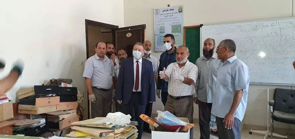 قام رئيس جامعة طرابلس "أ. د .نبيل النطاح" صباح اليوم الثلاثاء، بزيارة تفقدية لكلية التربية-قصر بن غشير، رفقة الكاتب العام "م .توفيق كاموكا" ووكيل الشؤون الطلابية "أ. أيمن إبراهيم"، حيث كان في استقباله عميد الكلية "د. عبدالناصر العباني" ووكيل الكلية "أ. محمد شهوب"، وعدد من رؤساء الأقسام العلمية ومدراء المكاتب، واطلع الرئيس على الأضرار التي لحقت بمبني الكلية واستمع إلي شرح تفصيلي من أعضاء مجلس الكلية عن إعداد الخطة للاستئناف العملية التعليمية بعد منح الإذن والموافقة من الجهات ذات الاختصاص، وكذلك الوقوف على الاحتياجات العاجلة للكلية، كما تعهّد رئيس الجامعة بتسخير كافة الإمكانيات لعودة الكلية لاستقبال طلابها في وقت عاجل.