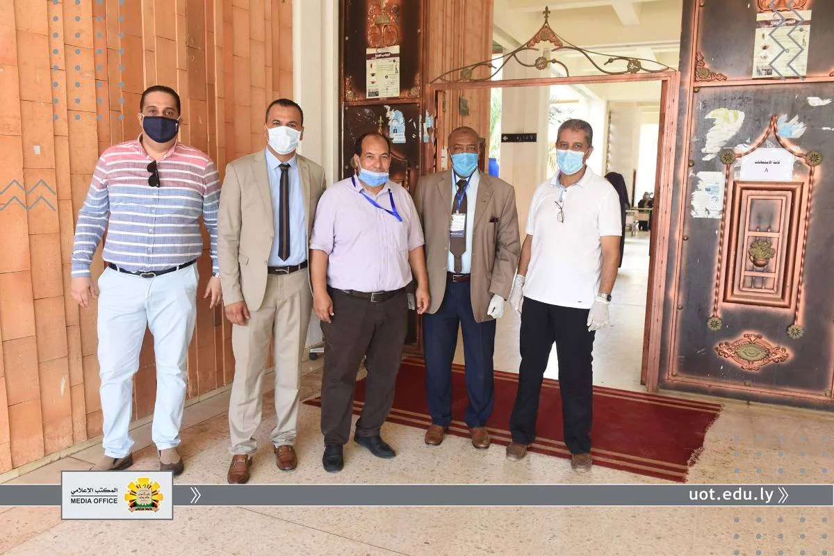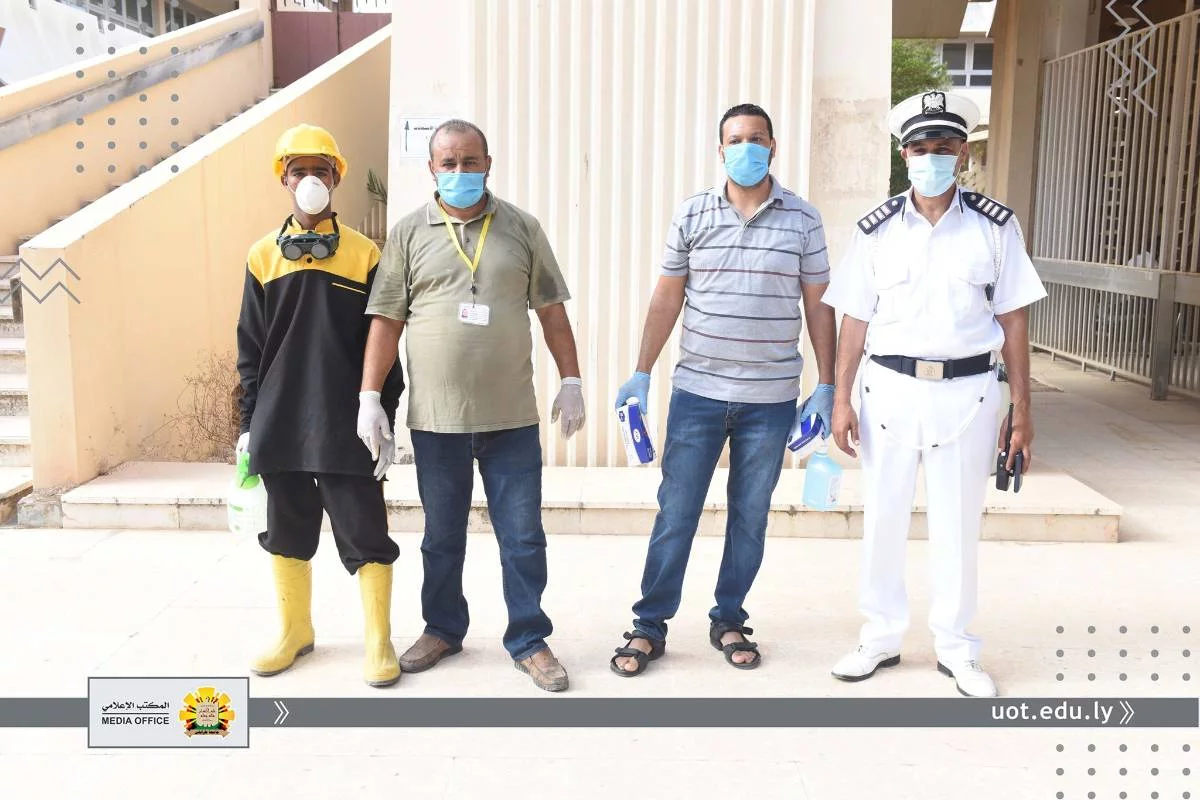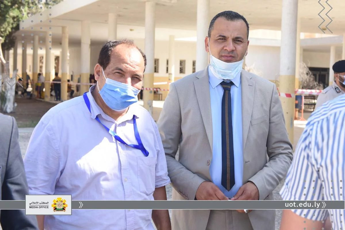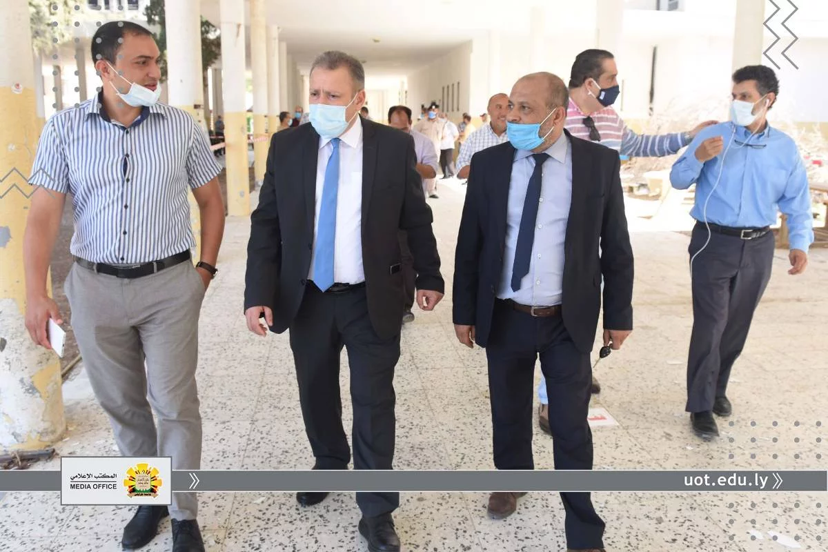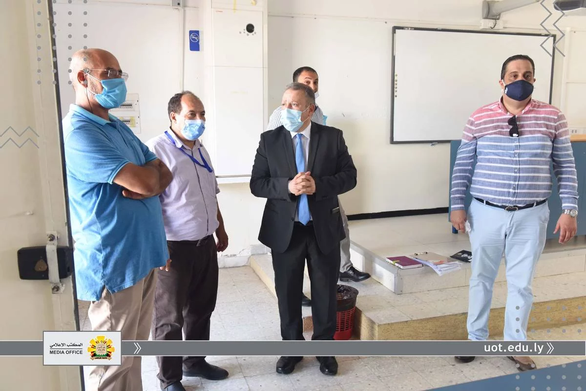 تفقد رئيس جامعة طرابلس "أ. د. نبيل النطاح" صباح اليوم الأحد ، رفقة وكيل الكليات الطبية-رئيس لجنة مكافحة جائحة كورونا المستجد "أ. د. عبد الرزاق العوزي"، قاعات ومدرجات الامتحانات وشملت الزيارة كلية الصيدلة- الزراعة- الطب البيطري- الآداب ، حيث اطلع من خلالها على الإجراءات الاحترازية والوقائية التي تقوم بها الجامعة في اليوم الأول لبدء الامتحانات. وأكّد السيد الرئيس خلال لقاءه بالكوادر العلمية والإدارية بالكليات على الجانب التعليمي والجانب الصحي لآلية التنفيذ التي وضعتها الجامعة لعودة الامتحانات لأبنائنا الطلبة، والتي تمت الموافقة عليها من قبل اللجنة العلمية الاستشارية لمكافحة جائحة كورونا المستجد، وتحقيق شروط السلامة الصحية من حيث التباعد بين الطلاب، وعدم وجود أي مظاهر للازدحام والتجمعات.وفي التصريح للناطق الرسمي باسم اللجنة المركزية العليا لعودة الدراسة "أ. هيثم الرتيمي" أكد أن الكليات اتخذت جميع شروط السلامة الصحية من حيث تعقيم القاعات والمدرجات، وتأمين أجهزة اختبار الحرارة، وتوفير المعقمات اللازمة، متمنياً لأبنائنا الطلبة كل التوفيق والنجاح لمتابعة دراستهم وتعويض الفاقد العلمي.