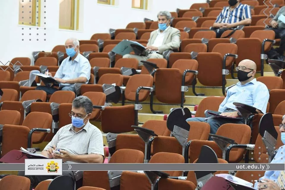 عقد صباح اليوم الإثنين الموافق للسابع من سبتمبر، الاجتماع التاسع لمجلس جامعة طرابلس، وذلك برئاسة "أ. د. نبيل النطاح" رئيس جامعة طرابلس، وبحضور السادة الوكلاء والكاتب العام، وعمداء الكليات ونقيب أعضاء هيئة التدريس ونقيب موظفي الجامعة ،والمسجل العام ورئيس مكتب الجودة، ورئيس اتحاد طلبة جامعة طرابلس. حيث تم اعتماد محضر الاجتماع الثامن لمجلس الجامعة للعام الحالي، و مناقشة بنود الاجتماع والمتمثلة في عرض تقديمي للتعريف بمركز الريادة والابتكار بالجامعة، وعرض التقرير السنوي عن نشاطات كلية التربية البدنية وعلوم الرياضة خلال العام 2019-2020، وكذلك عرض مشروع النظام الأساسي لصندوق التكافل الاجتماعي والمقدم من رئيس مجلس إدارة الصندوق، و بالإضافة لعرض مذكرة عميد كلية الهندسة بشأن تفعيل قسم المرحلة العامة بالكليات.