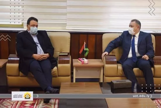 The President of the University of Tripoli met with the deputy director of the European Union for Private Sector in Libya (EU4PSL) and the Director of Expertise France, Mohammed Al-Aswad, in the presence of Prof. Naguib Al-Marzouki and the Director of International Cooperation Office (ICO) and Head of Contract Unit at the ICO. The meeting focused on joint cooperation between EU4PSL and the University of Tripoli. Discussions also centred on supporting entrepreneurship education in Libyan universities.